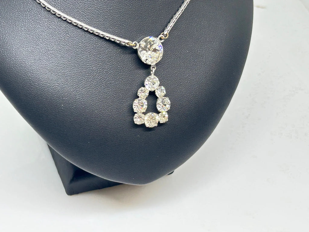 Brilliant Vintage Rhinestone Necklace with Sparkling Open Drop