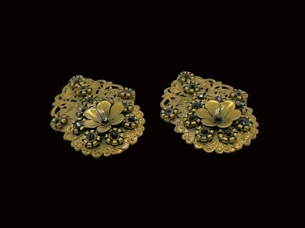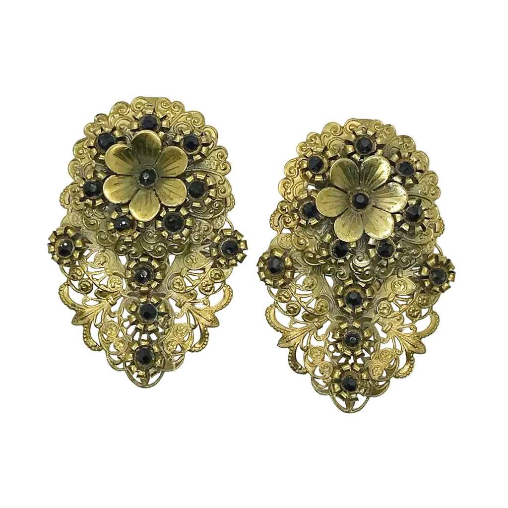 Elaborate Victorian Dress Clips with Filigree and Black Stones – Lamoree’s Vintage