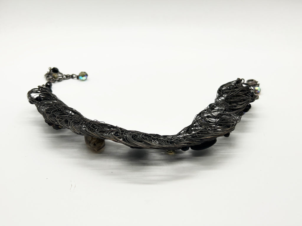 Artisan Black Woven Wire Statement Necklace/ Choker