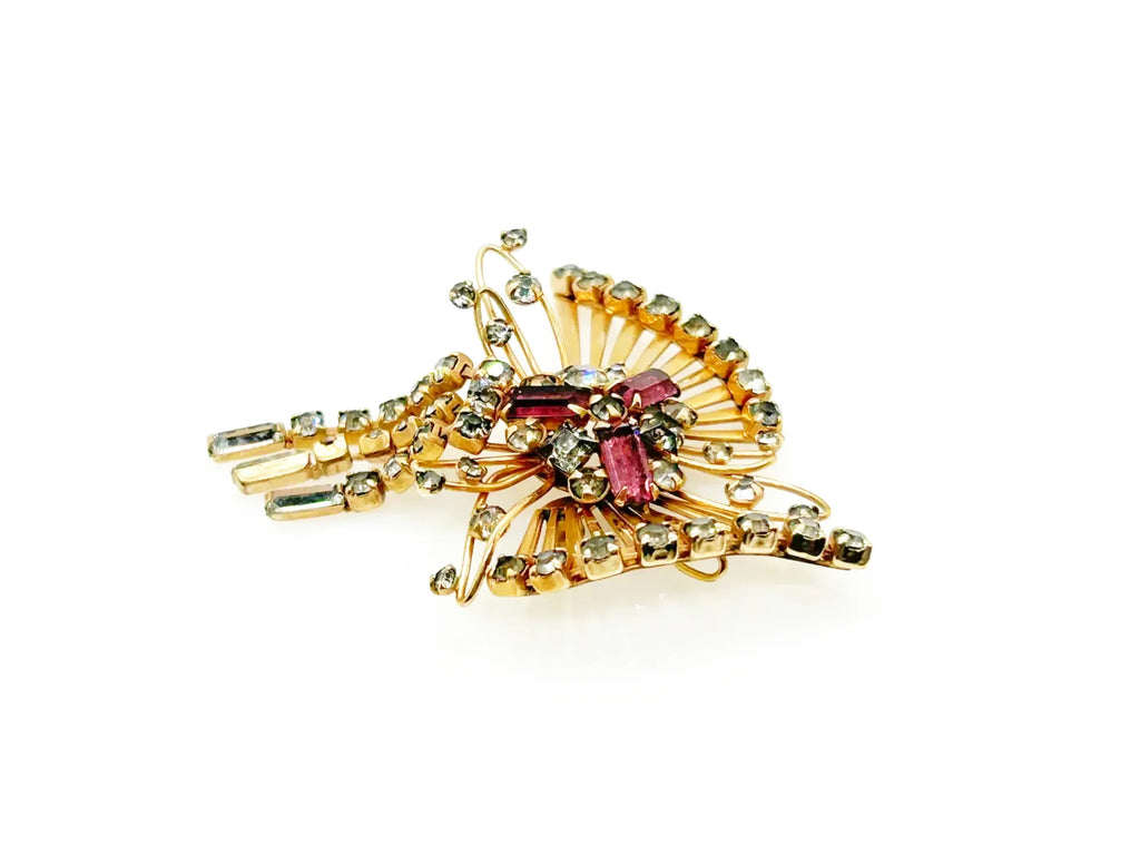 Introducing the M&S 1/20 12kt G.F. Abstract Butterfly Brooch/Pendant — the perfect vintage solution to your style dilemmas. This exquisite butterfly brooch pendant highlights delicate abstract artistry paired with shimmering grey and purple/pink rhinestones