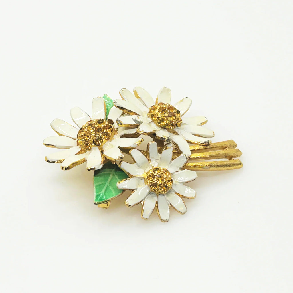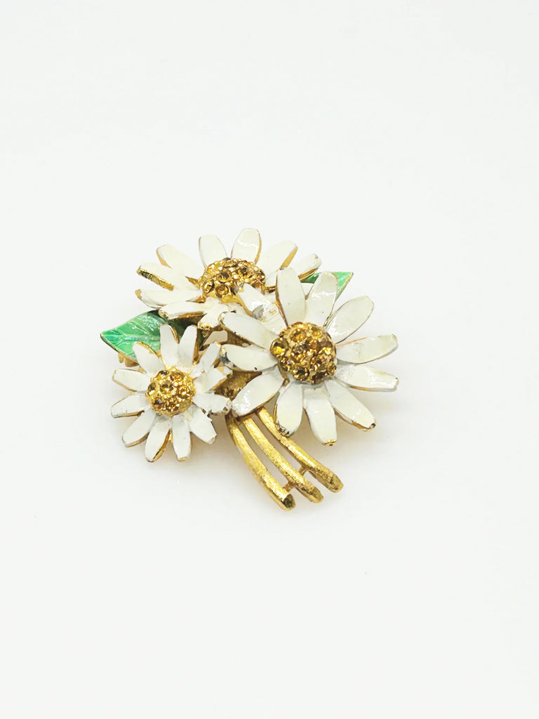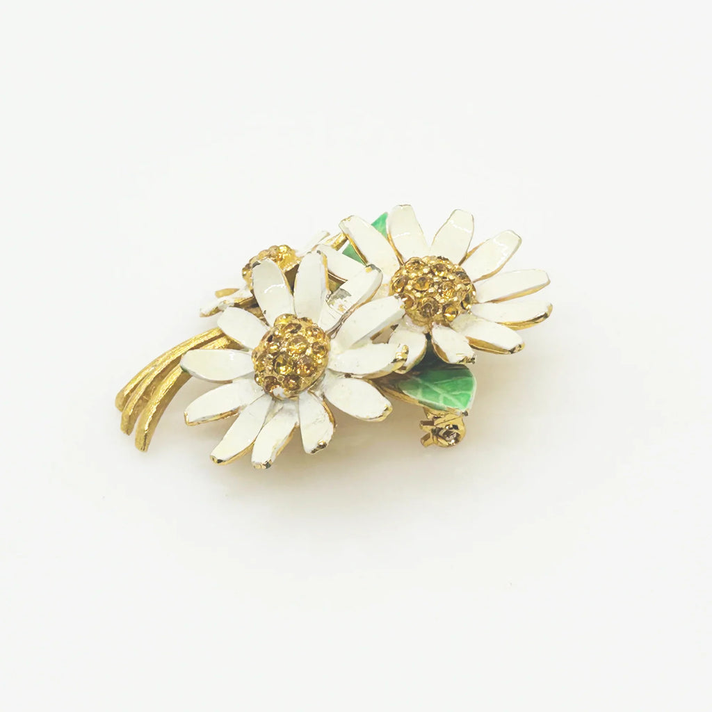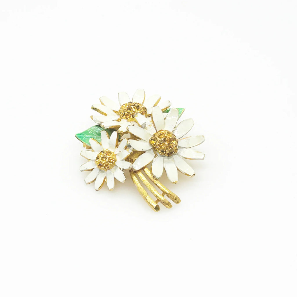 Chaming BSK Vintage Enamel and Rhinestone Daisy Brooch