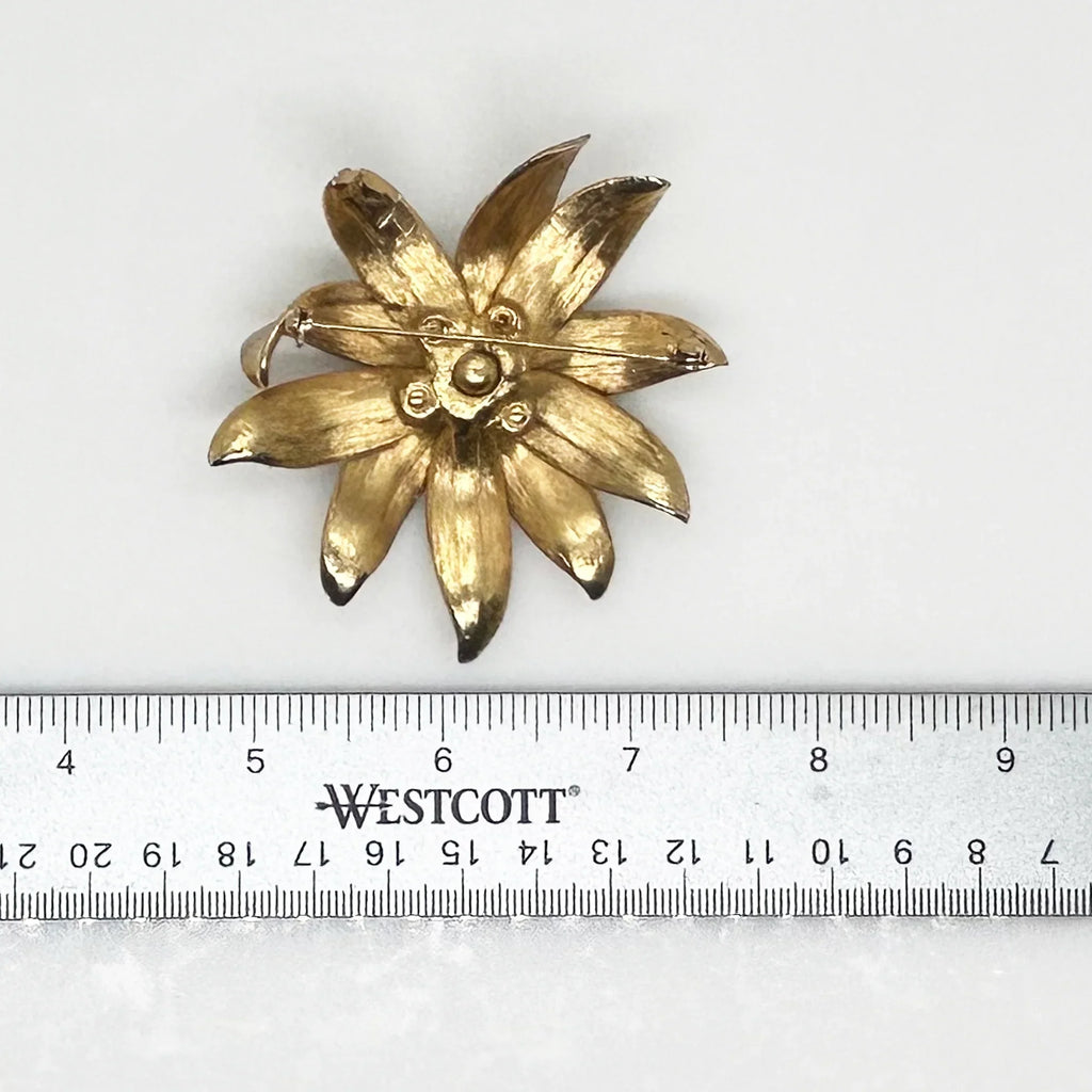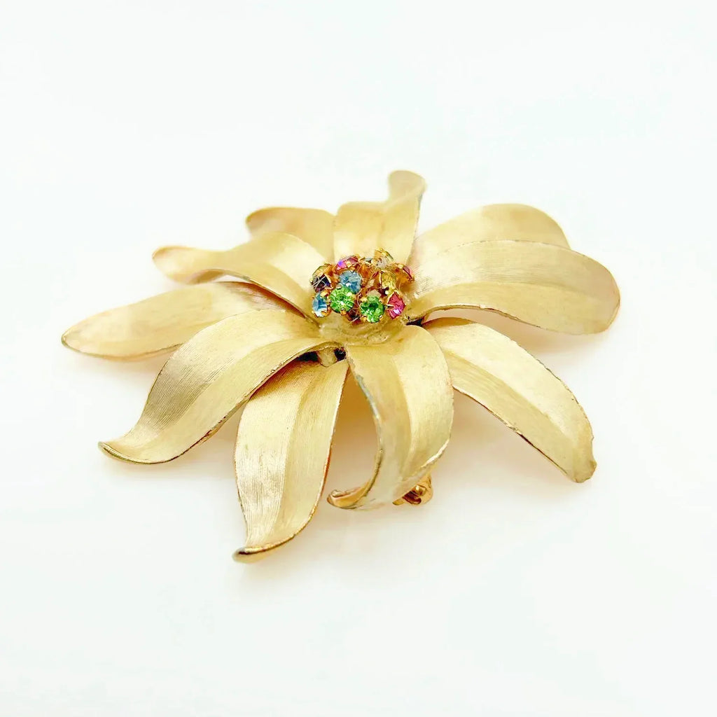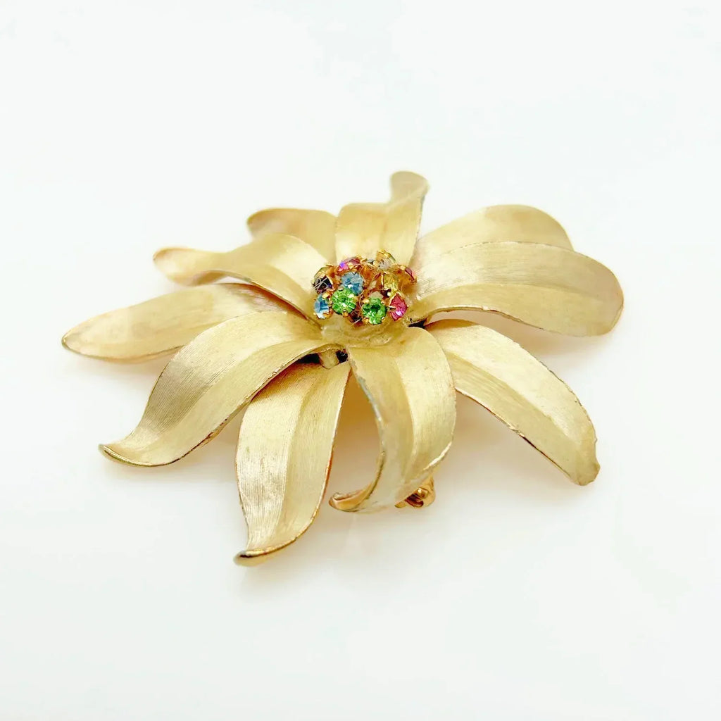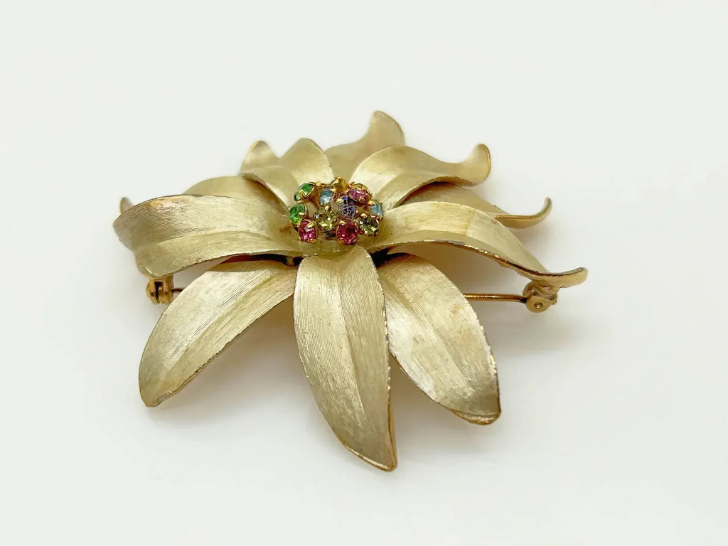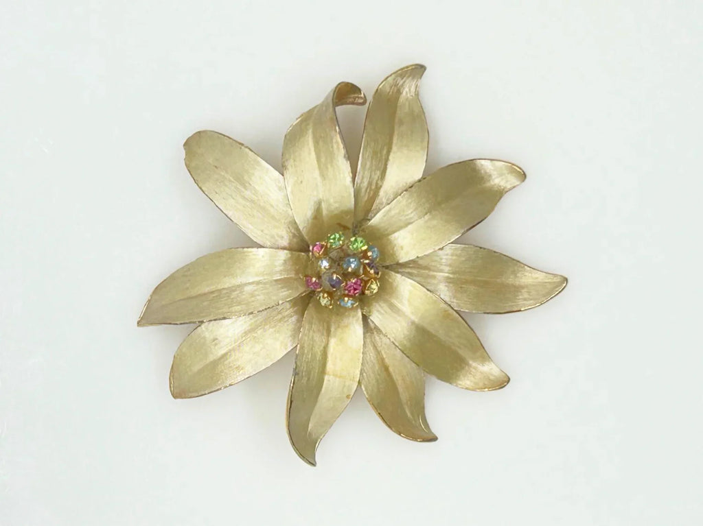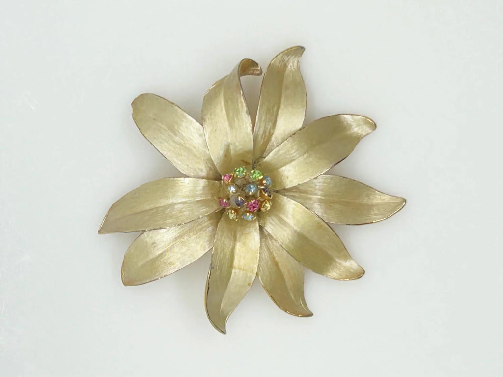 Vintage Flower Trembler Brooch with Pastel Rhinestone Center
