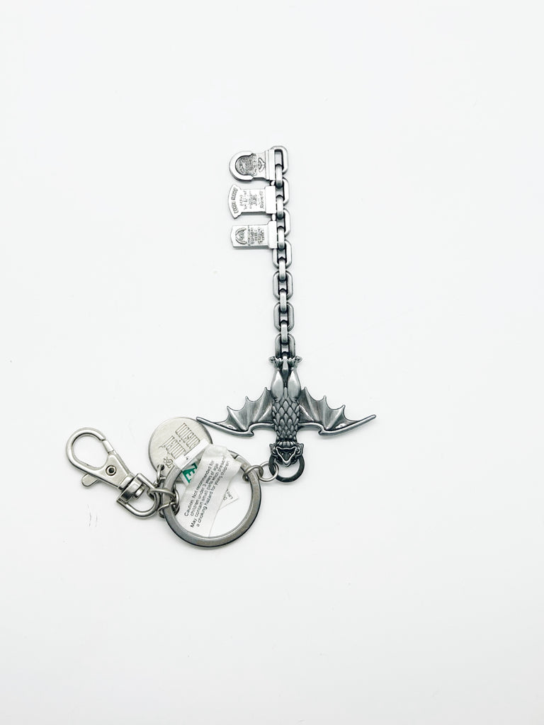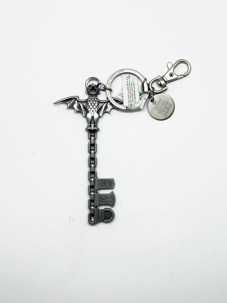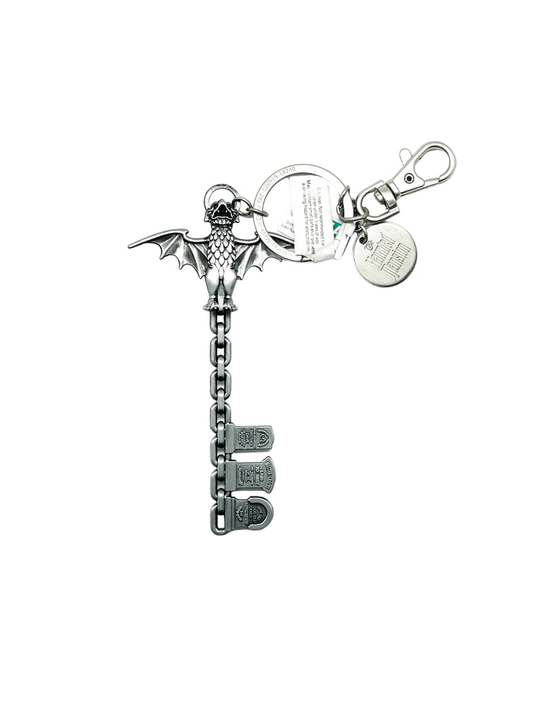 Bring the haunting charm of Disney's iconic Haunted Mansion to your everyday with this dramatic and collectible key chain, affectionately known as the "bat wing key chain." This authentic Disney Parks exclusive accessory is meticulously crafted from durable zinc alloy, perfectly capturing the Gothic elegance and eerie allure of the classic attraction. The key chain boasts a distinctive winged design, an iconic logo plaque, and a charming pendant featuring the enigmatic Madame Leota. Completing the design, the attached key showcases a captivating skeleton key design adorned with bat wings. To appreciate its size, this exquisite key chain measures approximately 5.85 inches in height, 2.6 inches in width, and 0.35 inches in length.