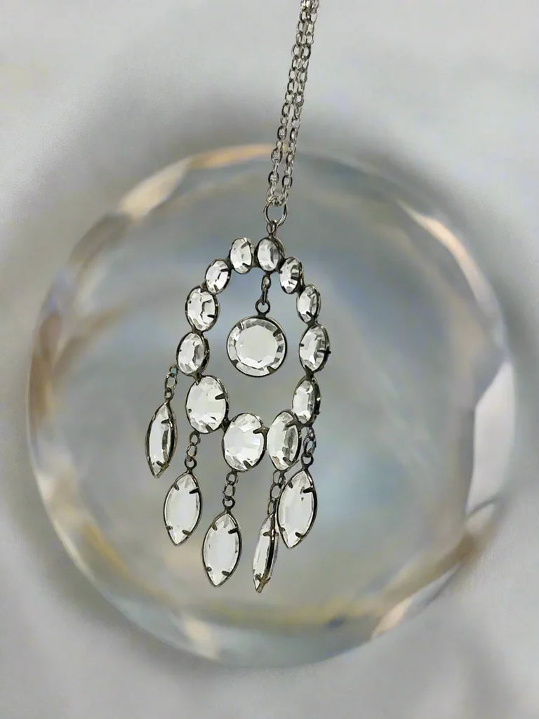 Estate Art Deco Circle Crystal Pendant with Glittering Drops - Lamoree’s Vintage