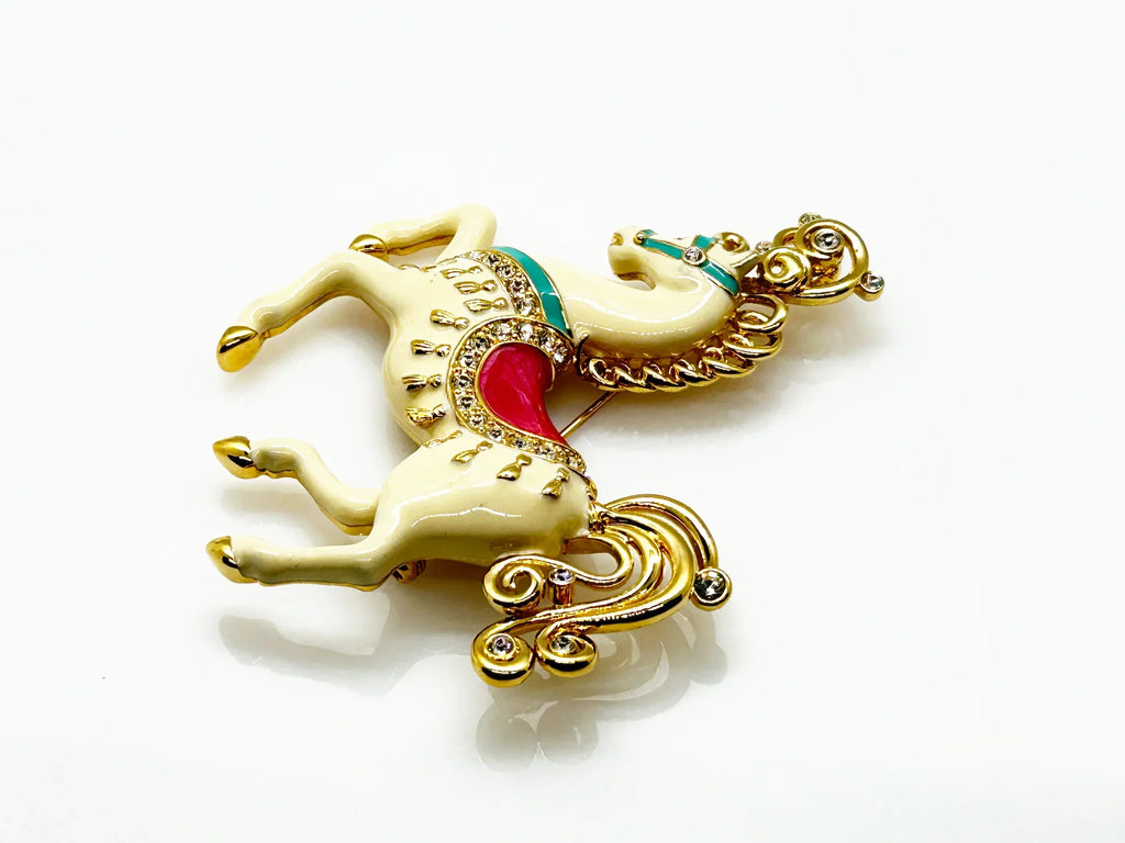 Bob Mackie Prancing Carousel Horse Brooch (1980s)