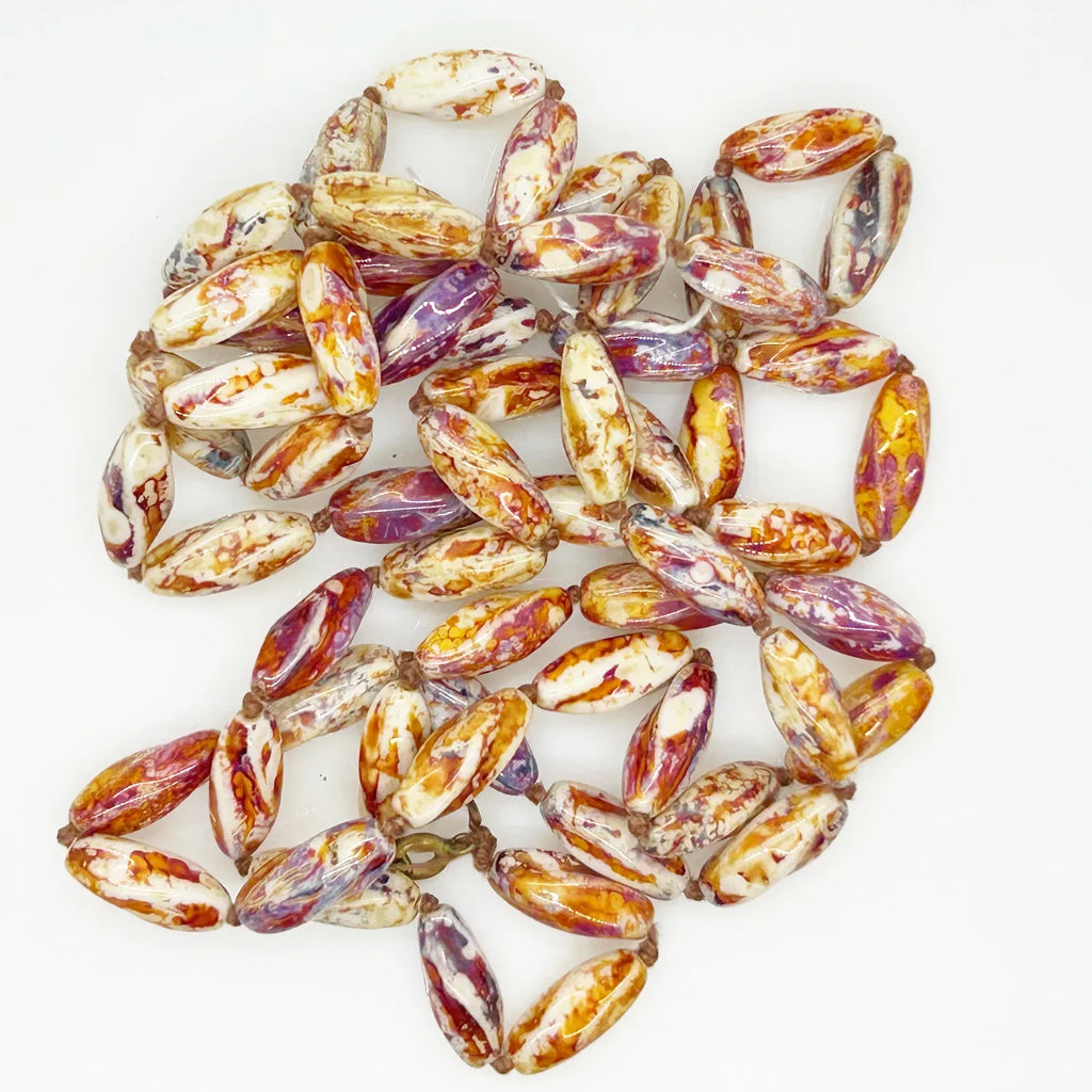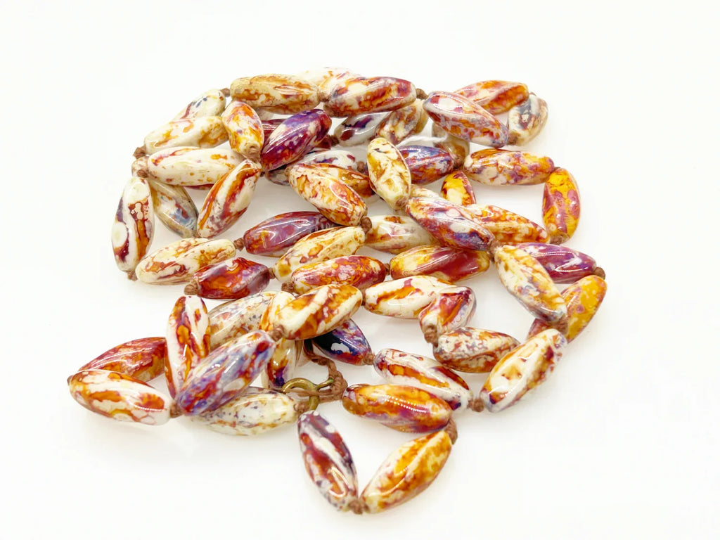 Striking 48" Brown, Purple and White Glass Beads Long Necklace