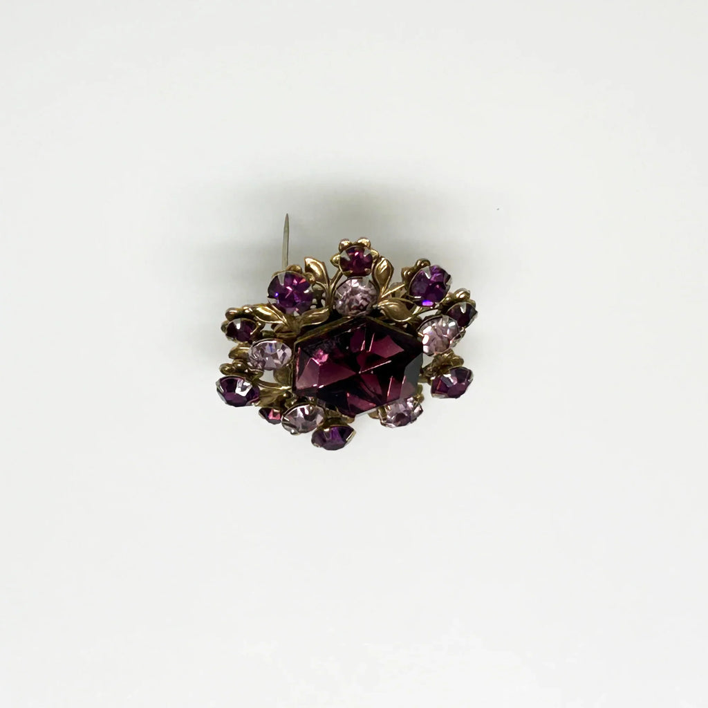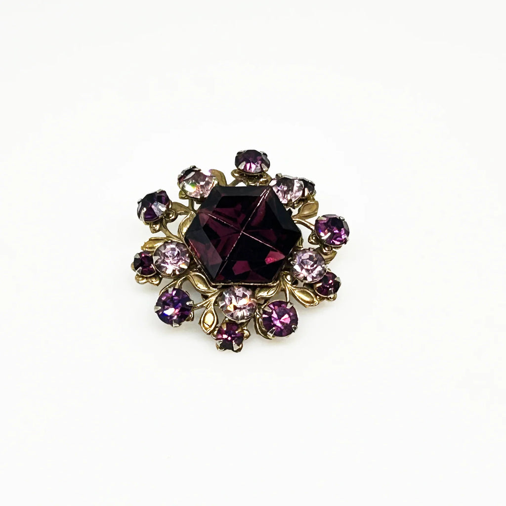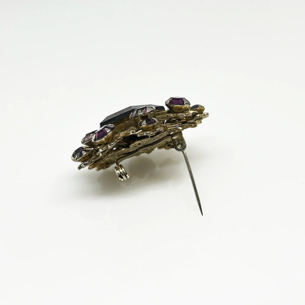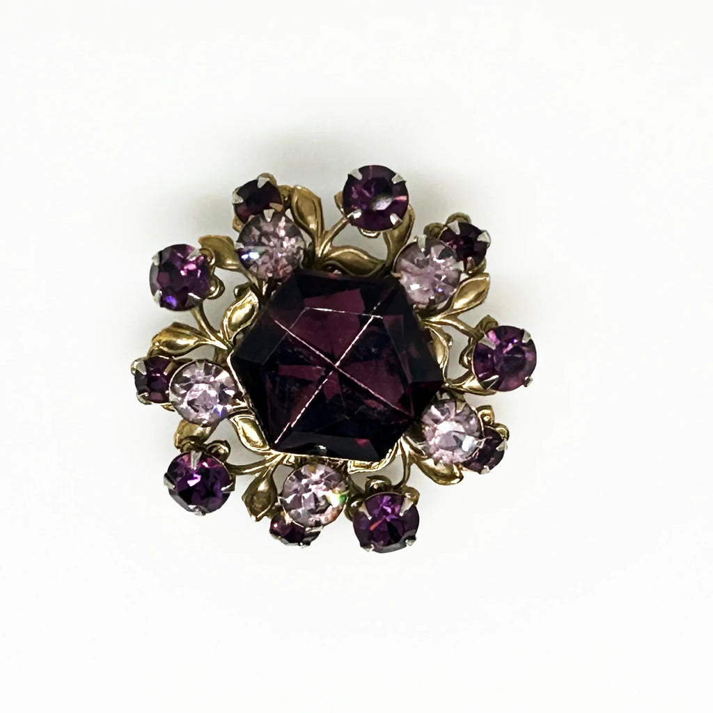 Czech 1930s Vintage Purple Brooch with Large Octogaonal Stone