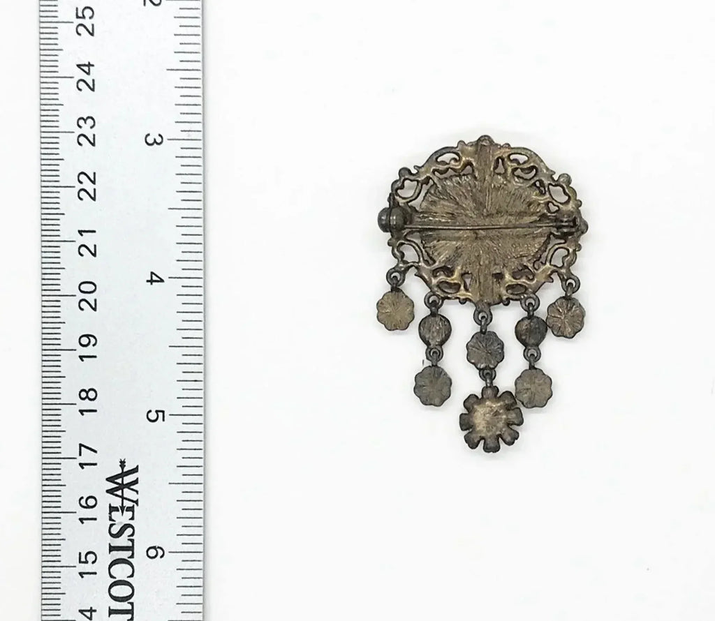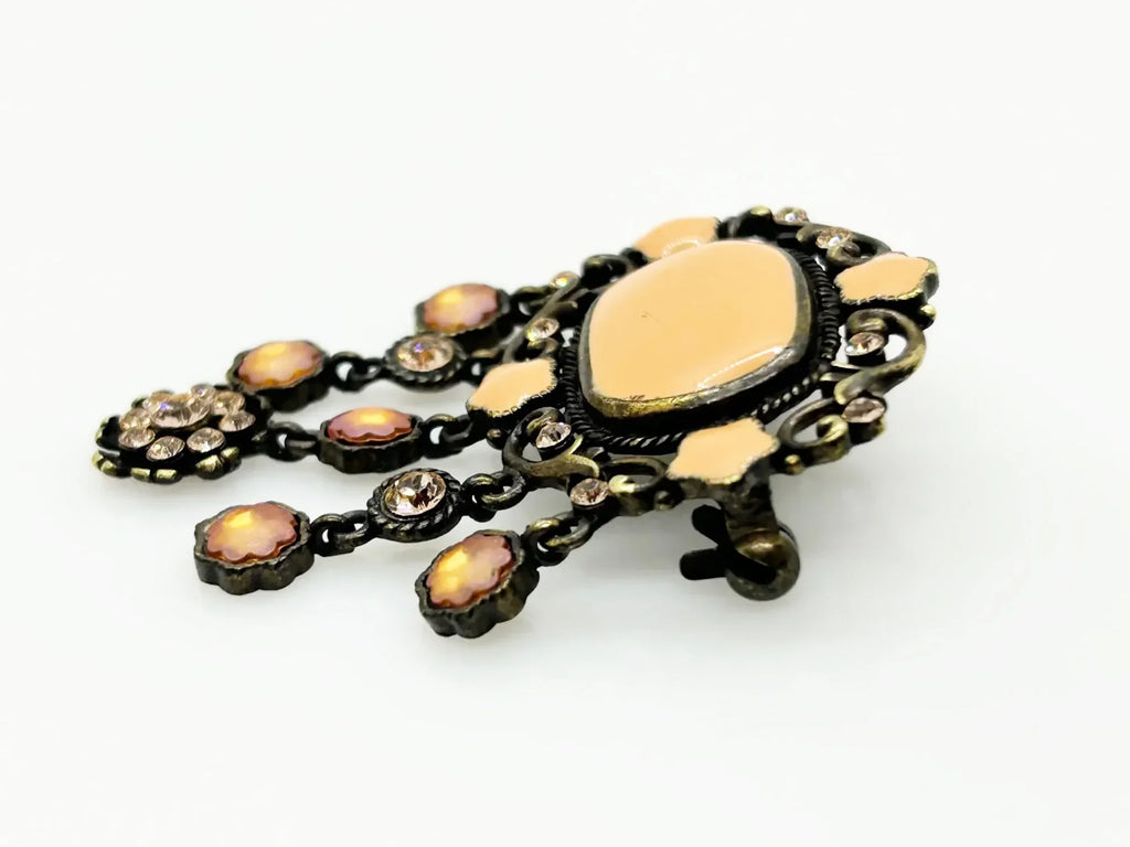 Vintage 1920s-1930s Peach Colored Enamel and Rhinestone Drop Brooch