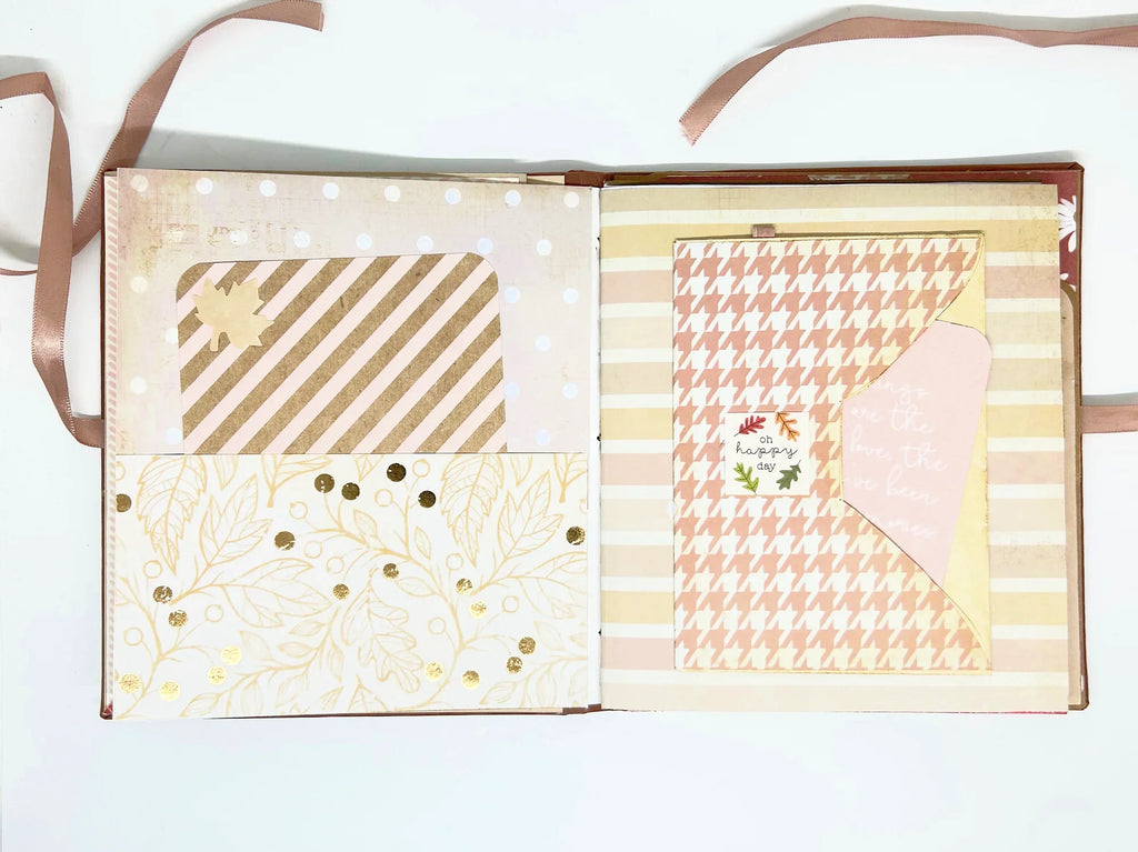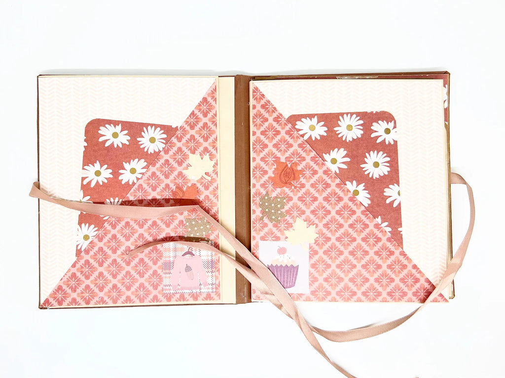 This charming album showcases autumn leaves, seasonal flowers, and delightful illustrations of warm drinks. Centered around family, home, fall, and coffee, it includes dedicated spaces for your personal notes and mementos, allowing you to customize it easily. Tied with a smooth pale amber ribbon, the album features numerous inserts and fold-outs, including over 25 slots. Measuring 6.5" x 6", it is a beautiful keepsake crafted with exceptional care and attention. Don’t miss the chance to make this unique treasure yours today!