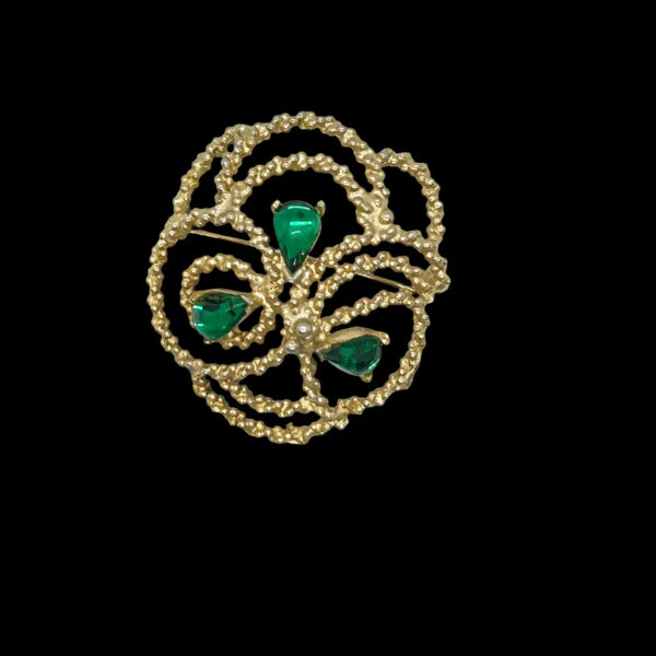 Dalshiem Green and Gold Textured Vintage Brooch