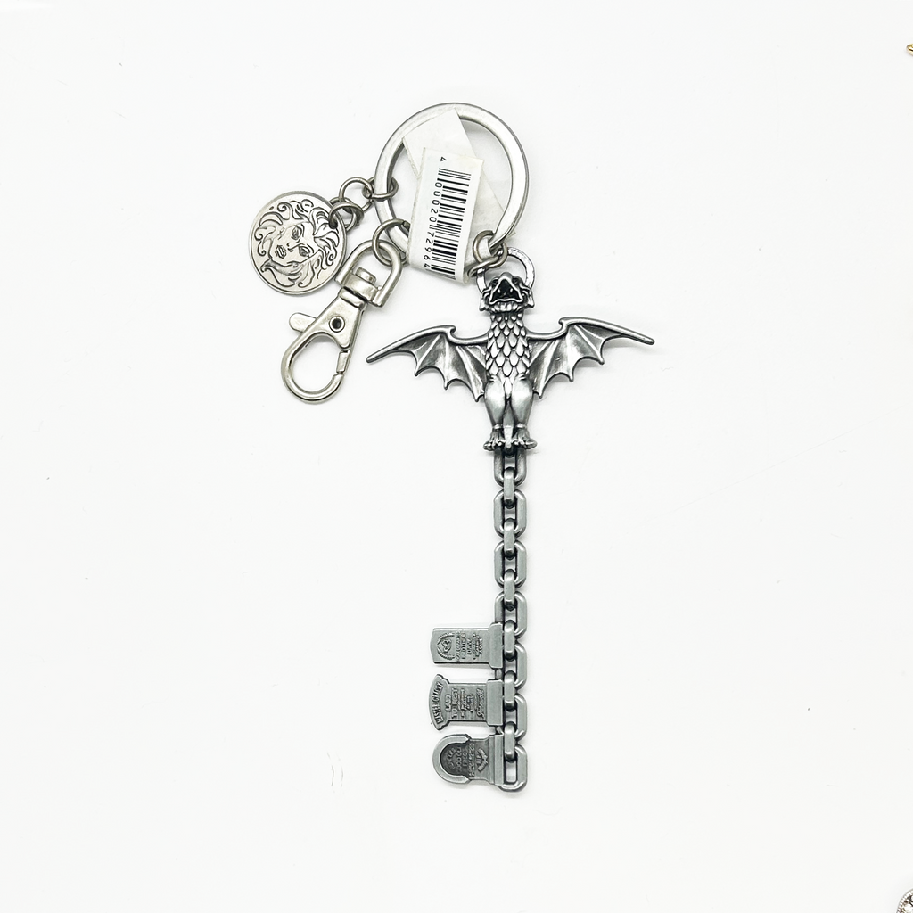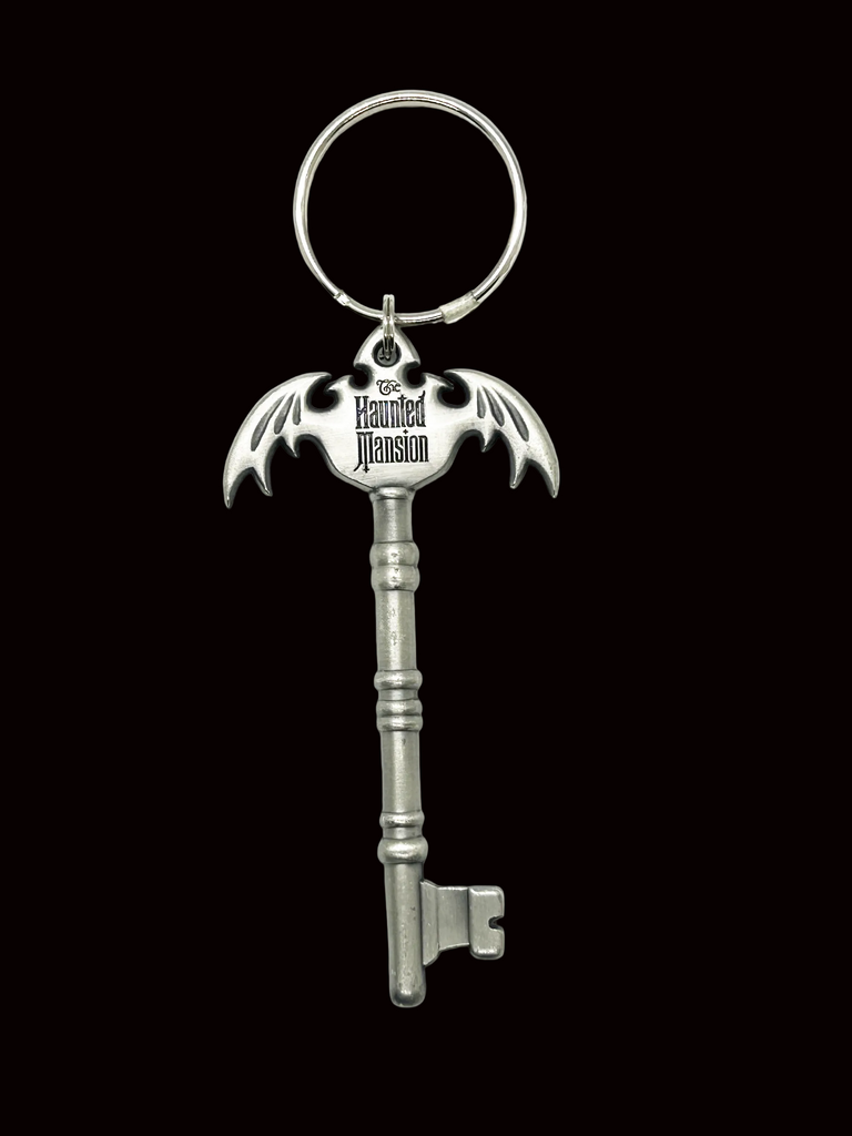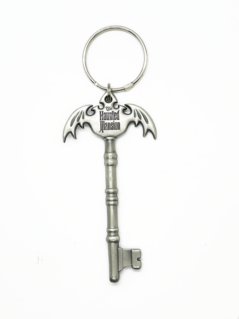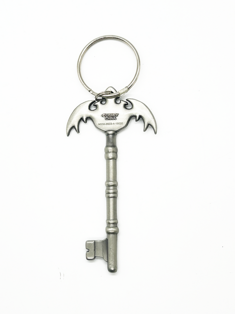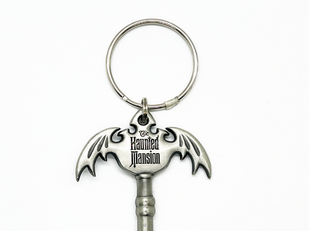 Unlock the magic of Disney Parks with this enchanting Haunted Mansion bat wing key chain. Crafted from durable zinc alloy, this collectible captures the gothic charm of the classic attraction with its distinctive winged design and iconic logo plaque. Perfect for fans who want to carry a piece of the spooky elegance home with them.