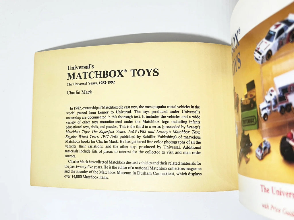 Universal's Matchbox Toys: The Universal Years, 1982-1992 by Charlie Mack. Matchbox Lesney made every kind of scale model, from jet airplanes to construction vehicles to passenger cars.