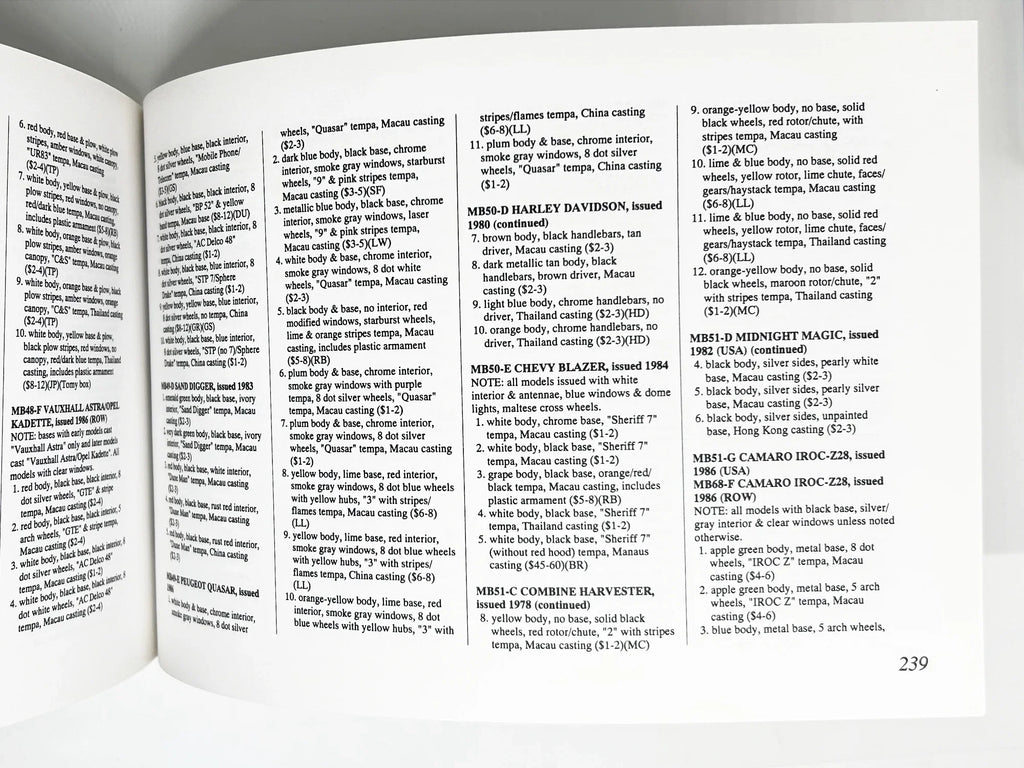 This guide focuses on the era.when Matchbox was taken over by Universal and the various toys and lines of toys that resulted. This is a huge resource for identifying the many vars, planes and vehicles. That has always been difficult for me, at first, so this guide saves so much time! The many, many color illustrations are invaluable.The book Universal's Matchbox Toys: The Universal Years, 1982-1992 by Charlie Mack was originally published on January 1, 1993, A revised second edition was also released on March 31, 1999.