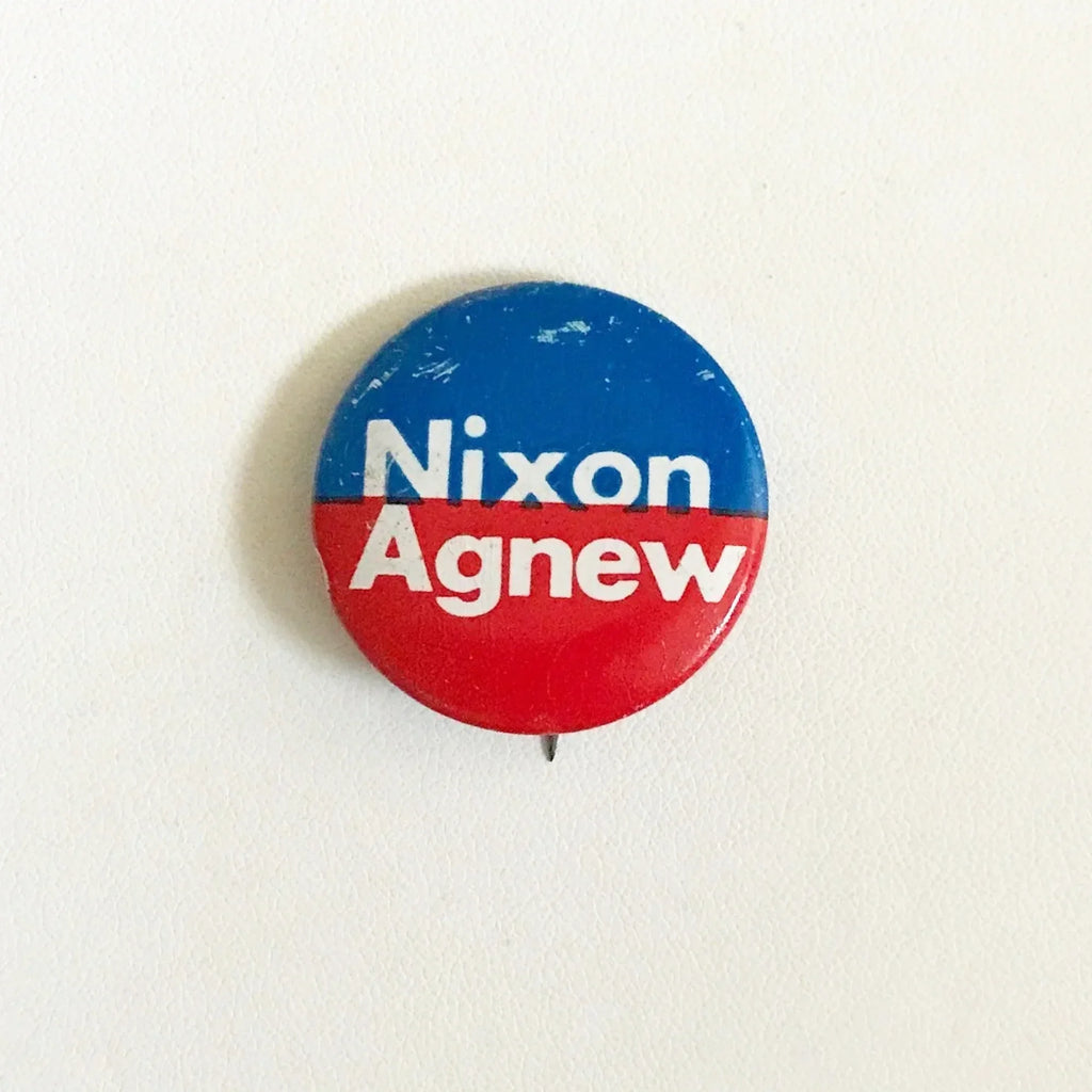 Celebrate a pivotal moment in American political history with the Nixon-Agnew Pin Back from the 1972 presidential campaign. Featuring bold red and blue colors with crisp white lettering, this vintage pin showcases the names of incumbent President Richard M. Nixon and Vice President Spiro Agnew, representing the Republican Party. Perfect for collectors or history enthusiasts, this authentic campaign memorabilia adds a unique touch to any collection while honoring a significant era in U.S. politics. Wear or display it to connect with the legacy of this influential election.