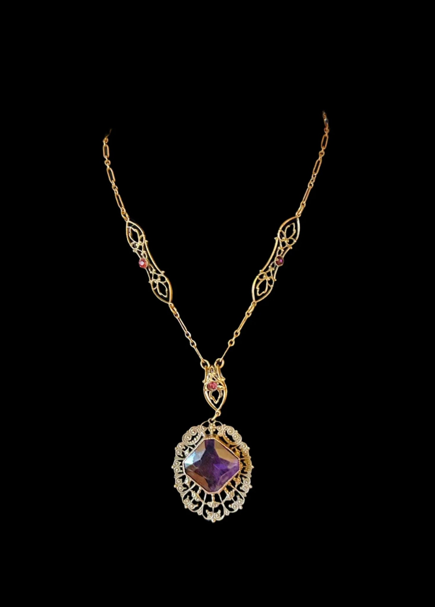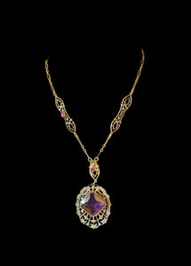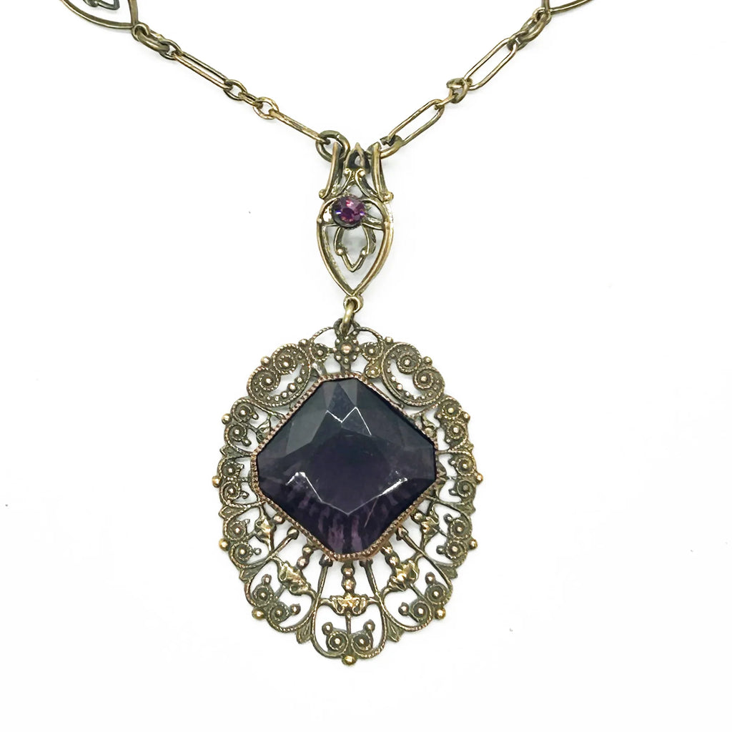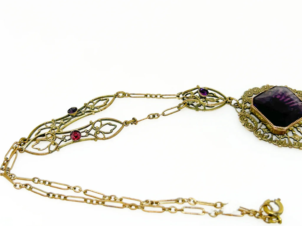 Outstanding Purple Stone and Vintage Filigree Necklace