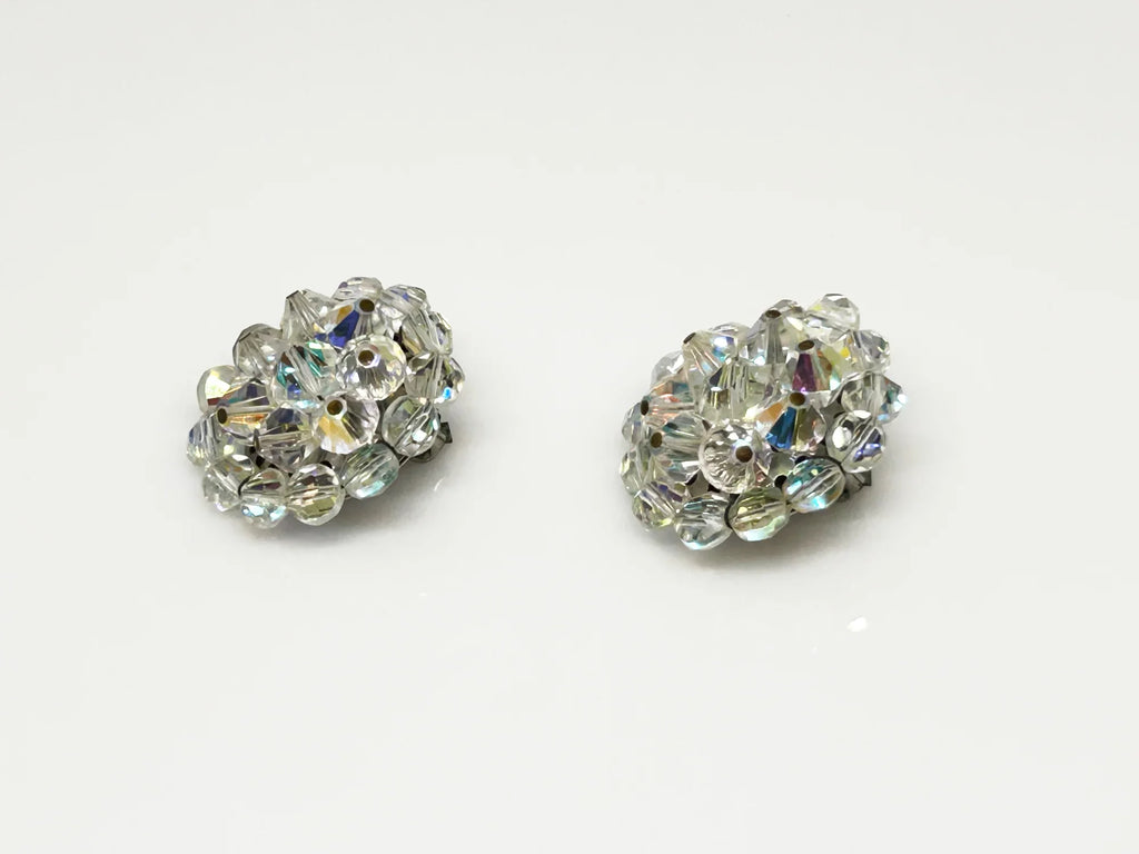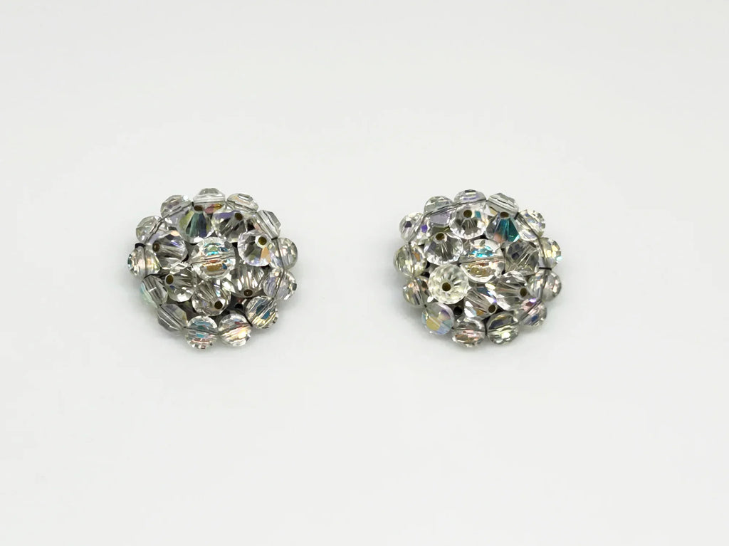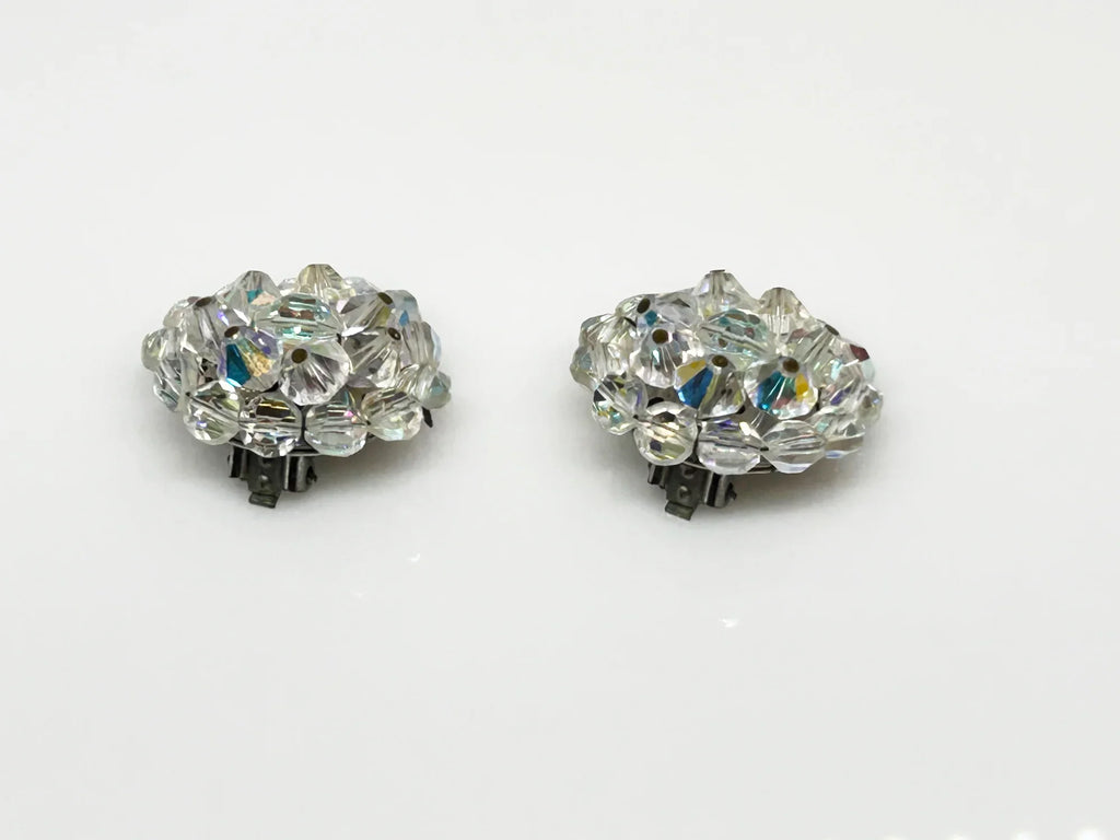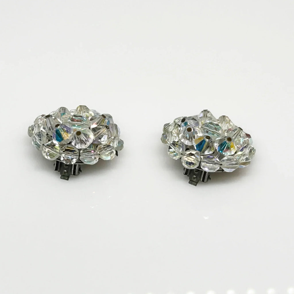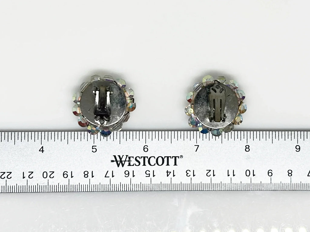 Larger Round Bright Aurora Borealis Clip On Vintage Earrings