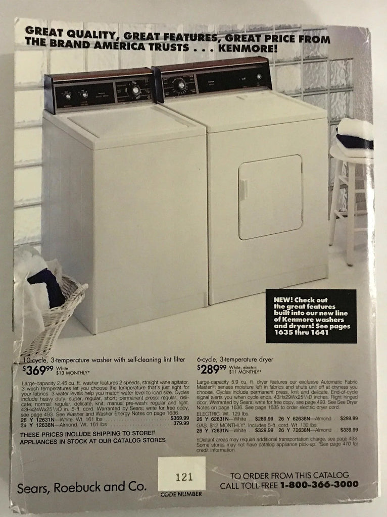 This is the Sears 1992-1993 Fall/winter catalog and has 1641 pages. Items available range from baby clothes to bed spreads, sinks, jewelry, power tools and many, many items in between. It's a great look back into the early 1990s! $8.95 + shipping