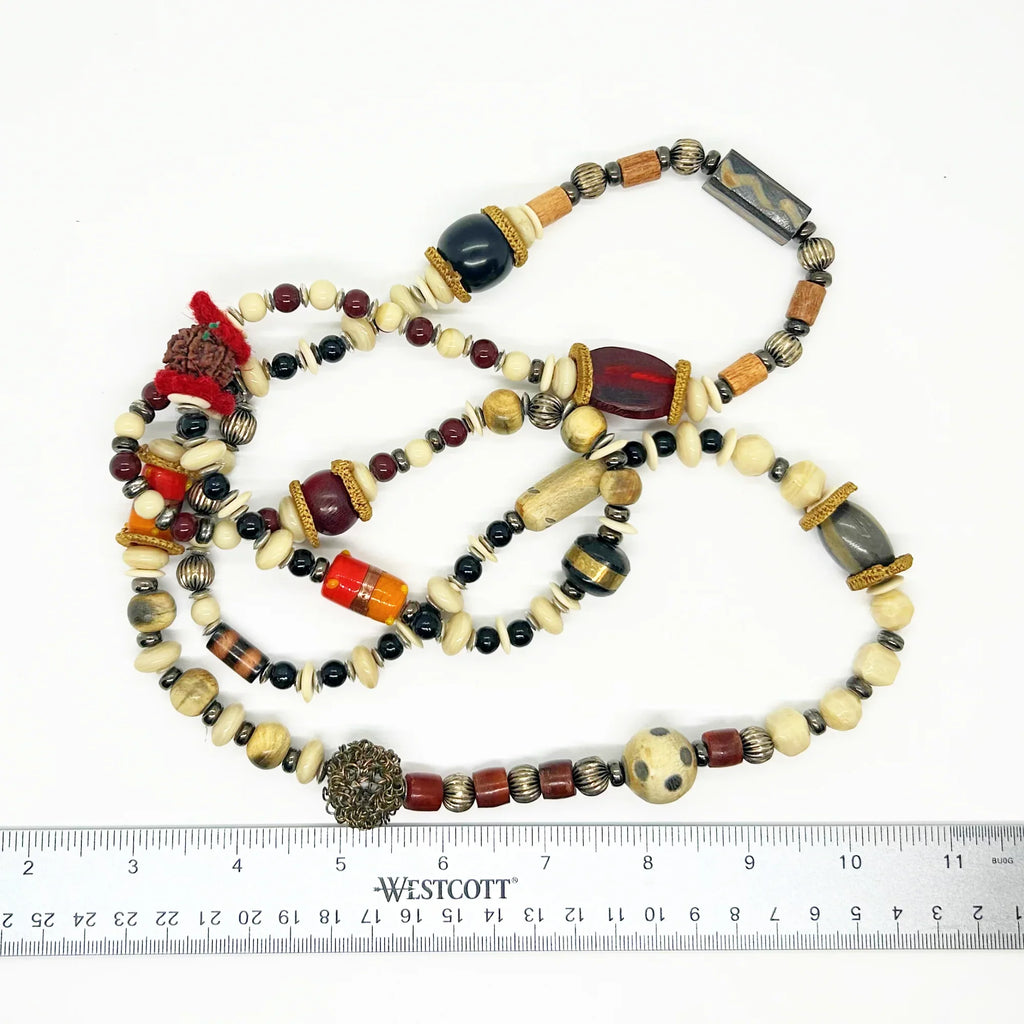 Vintage Tribal Bead Necklace - Vibrant 60" Red, Black, Cream – Lamoree’s Vintage