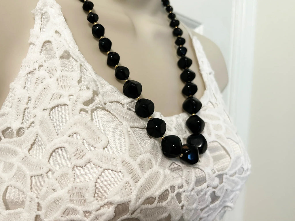 Vintage Avon "Modern Art" Graduated Chunky Black Bead Necklace (1986)