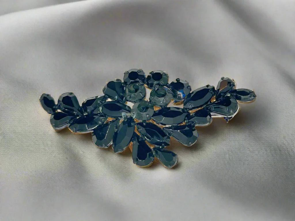 Dramatic Vintage Brooch with Black and Dark Gray Stones