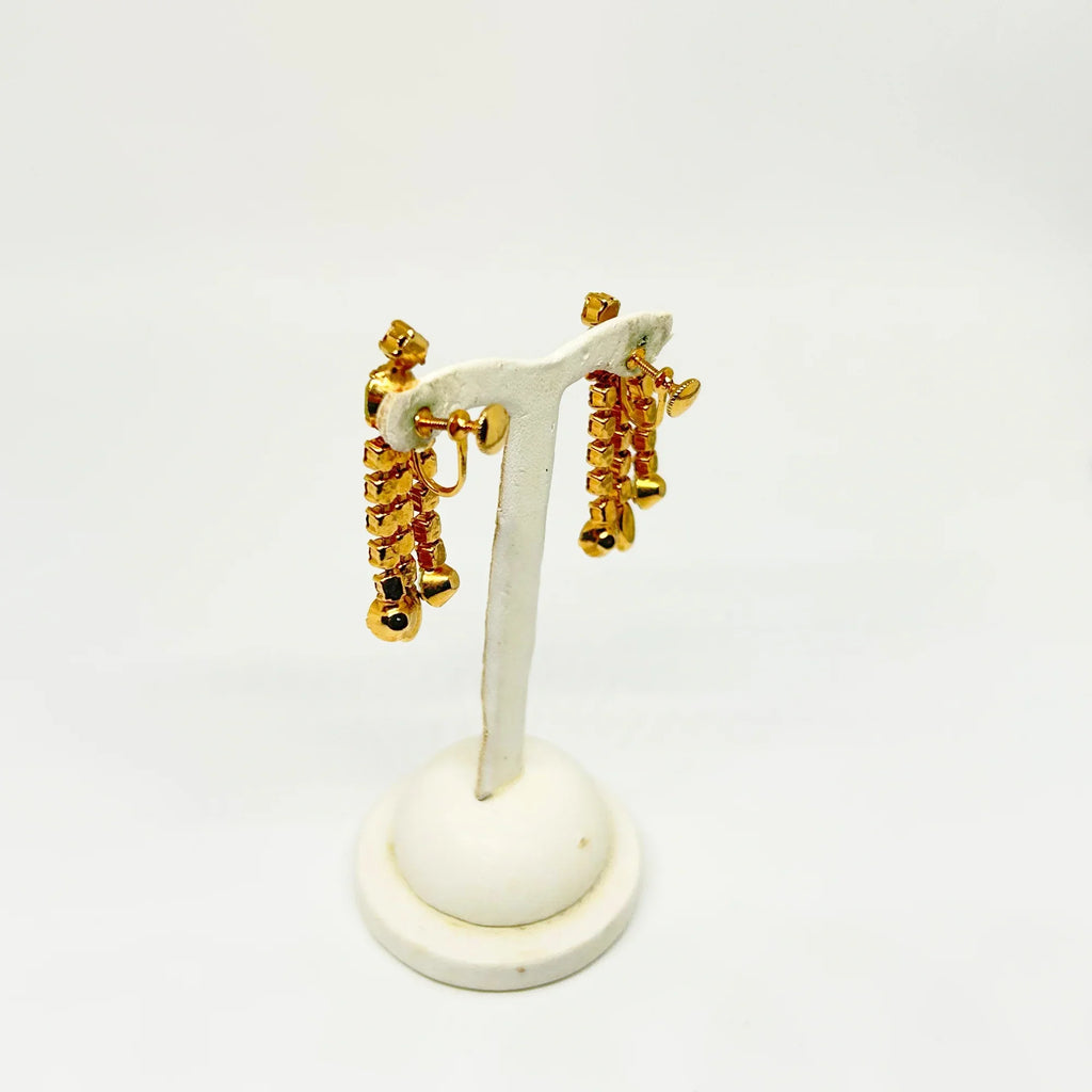 - Matching clip-on earrings accompany the set, adorned with three strands of dangles reflecting the rich color palette. These screw-back rhinestone earrings measure 2" at their longest point, providing the perfect balance of style with a secure and stable fit.