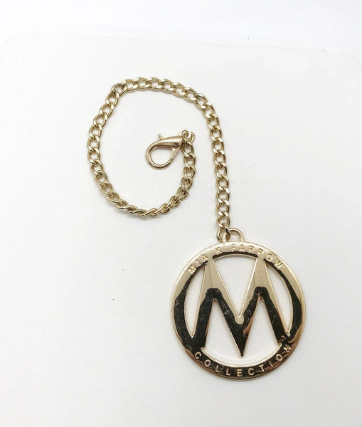 This is an unusual and hard to find key chain from the Mia K. Farrow Collection. It has a classic link chain with a large round charm with the initial M in the center. It is in good condition and measures 8 1/2" long.