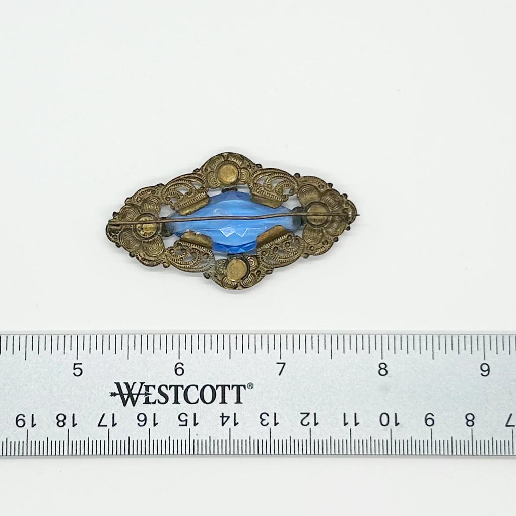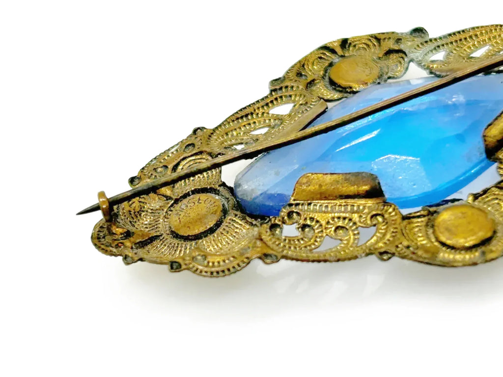 Vintage Filigree 1800s Victorian Brooch Pin with Blue Stones