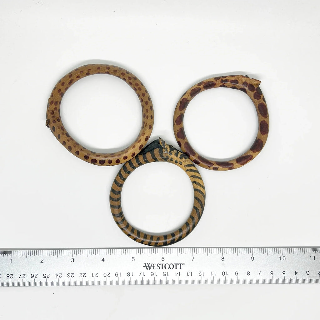 Set of Three Carved Wooden Giraffe Bangle Bracelets