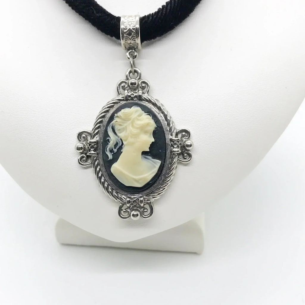 Vintage Cameo Black Velvet Choker Necklace- Lamoree's Vintage – Lamoree’s Vintage