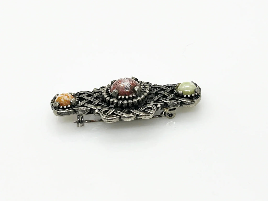 Vintage Celtic Knot Style Bar Pin Brooch Art Glass