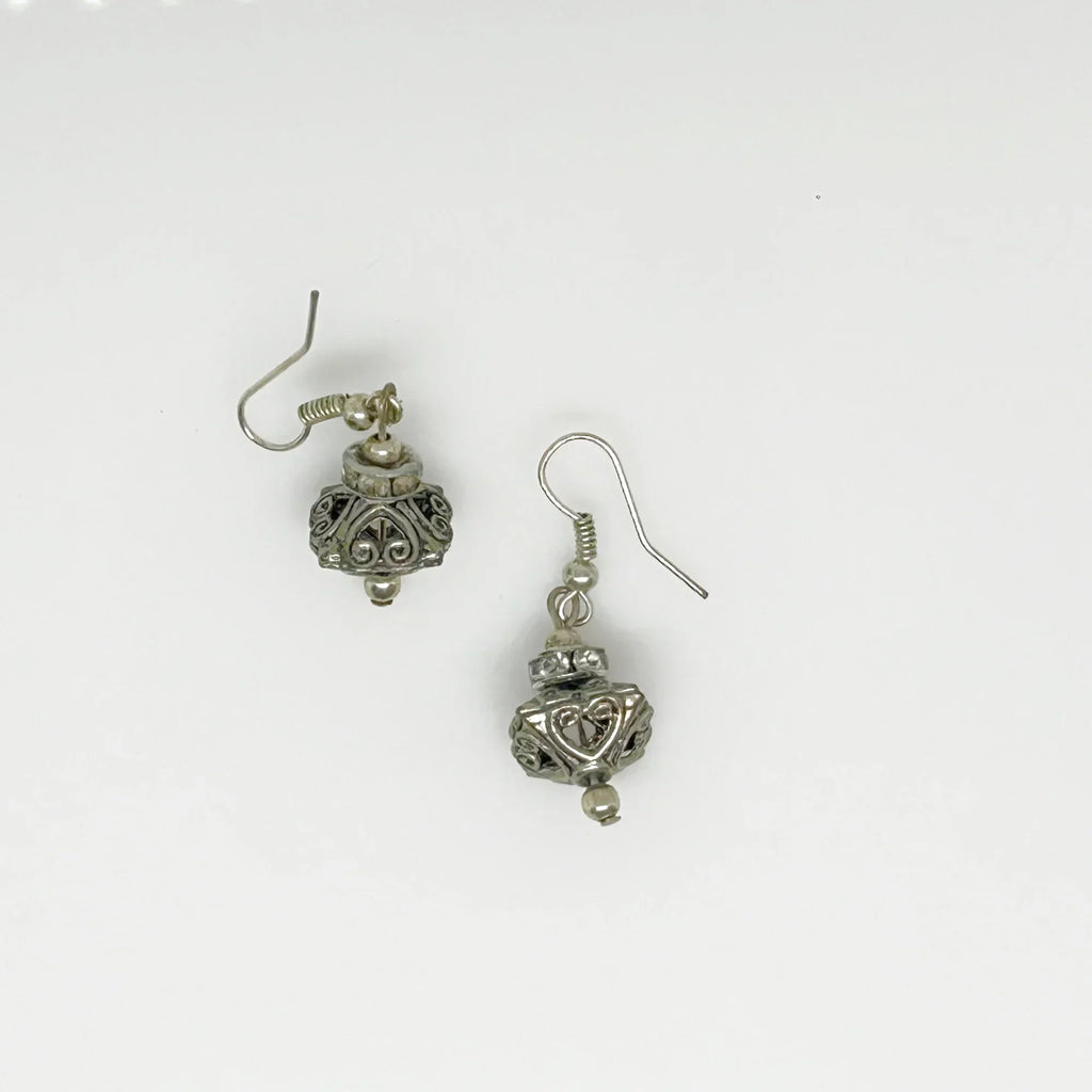 Delicately Filigreed Vintage Earrings with Scarlet and Black Stones