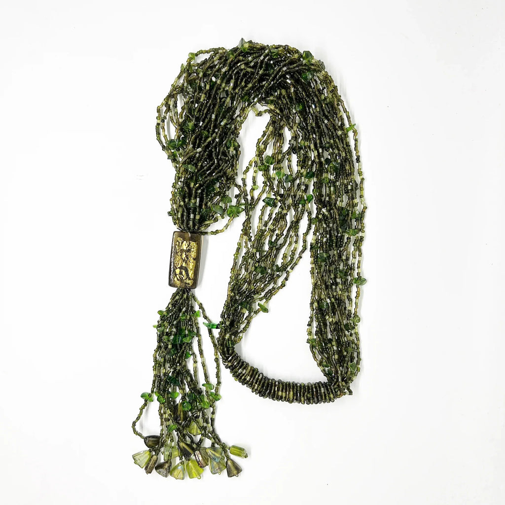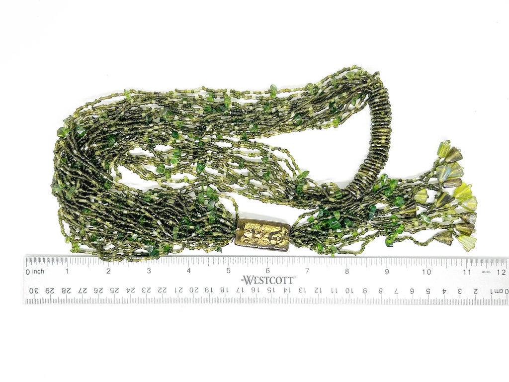 Long 1920s-30s Green Multi Strand Glass Beads Necklace – Lamoree’s Vintage