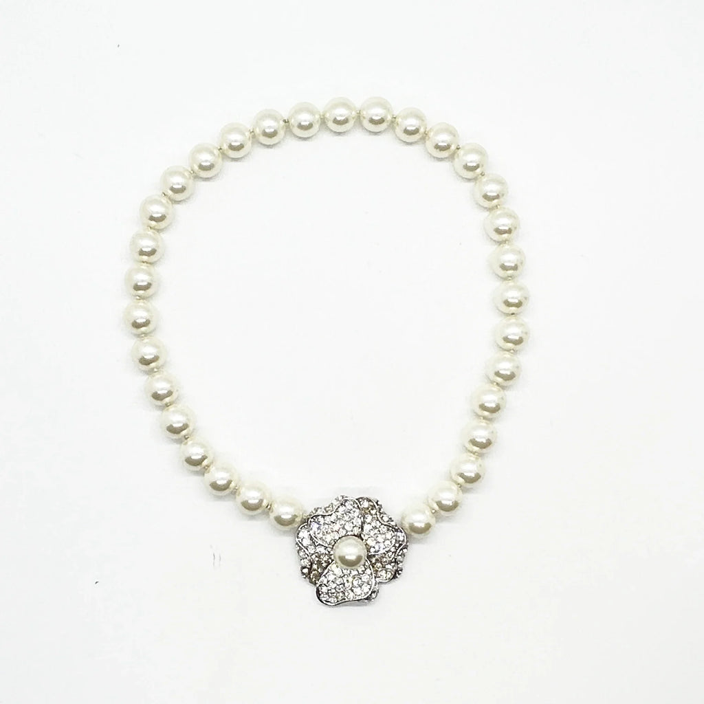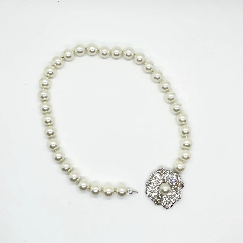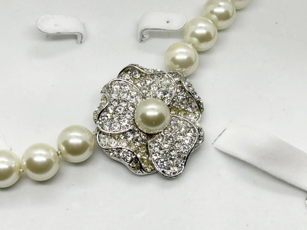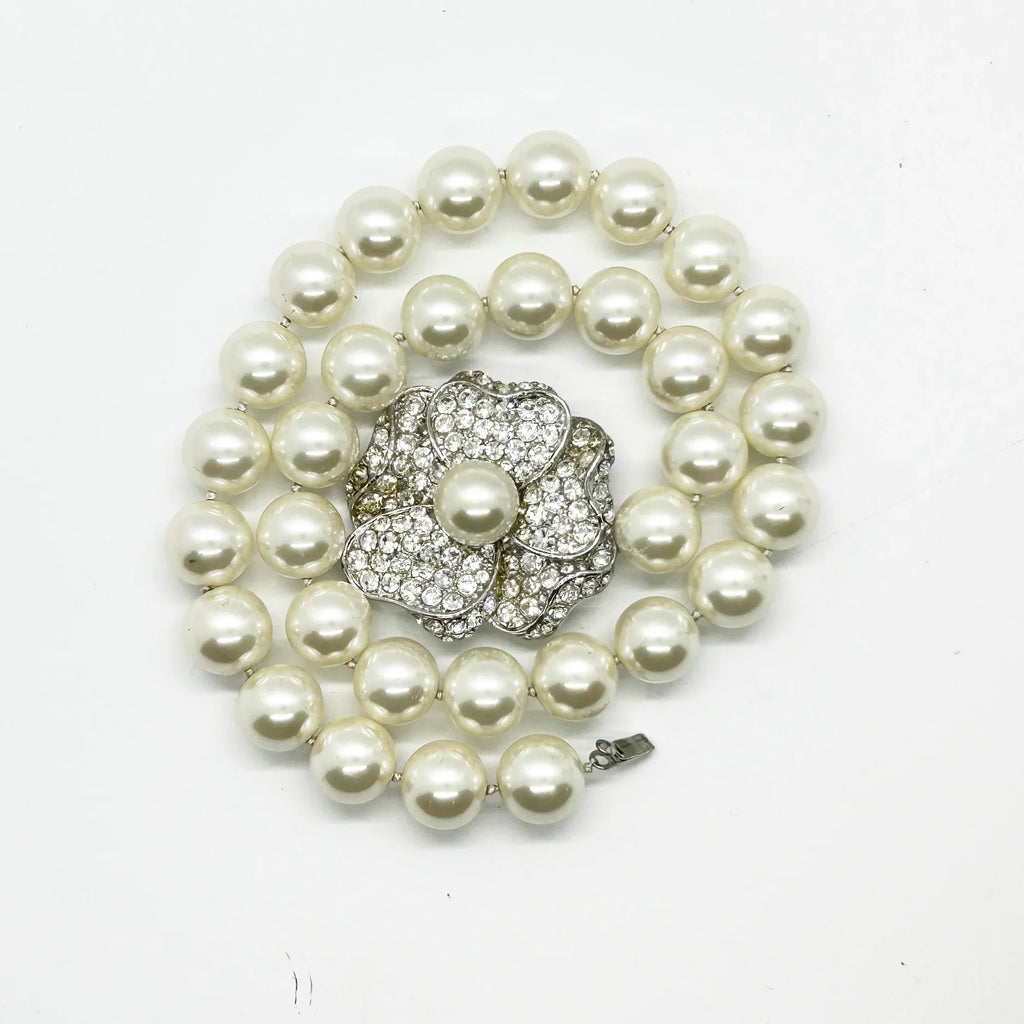 Kenneth Jay Lane Faux Pearl Necklace with Sparkling Flower Clasp – Lamoree’s Vintage
