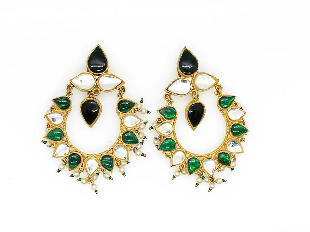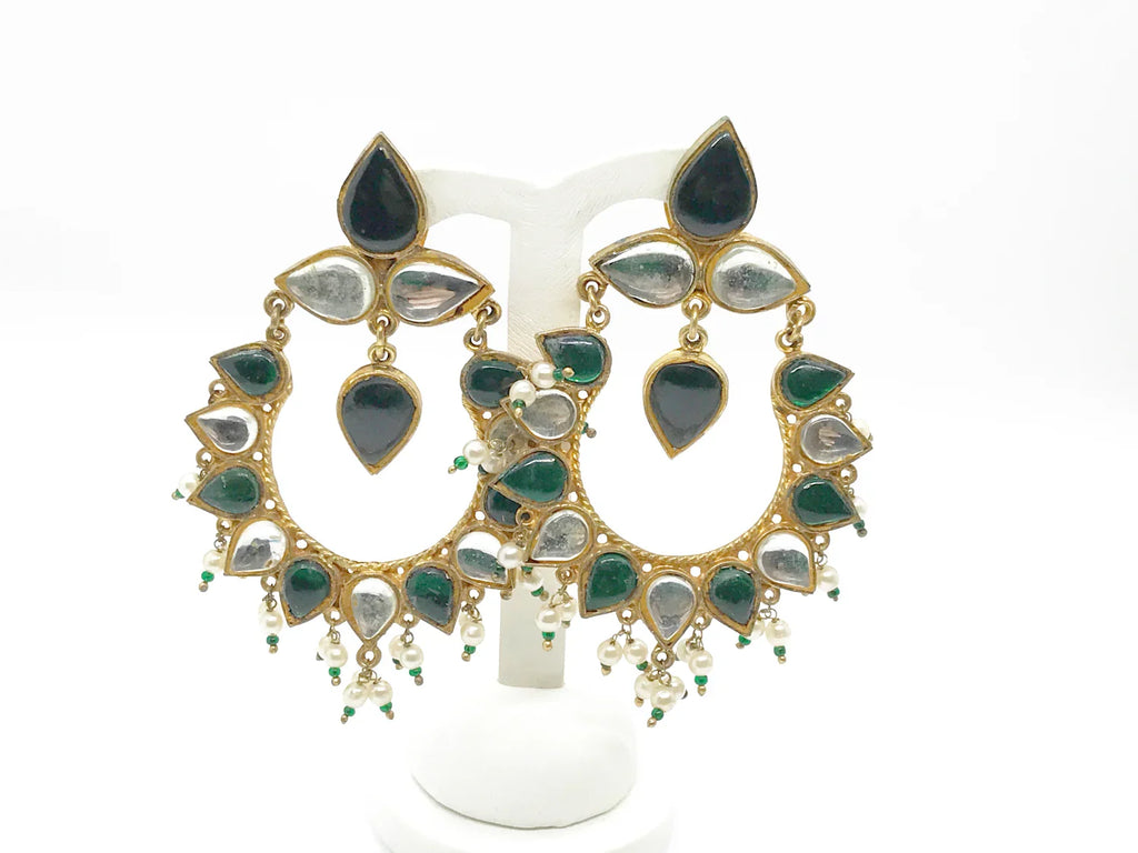 Impressive Pair of Large Green and White Chambadi Moghul Style Earrings