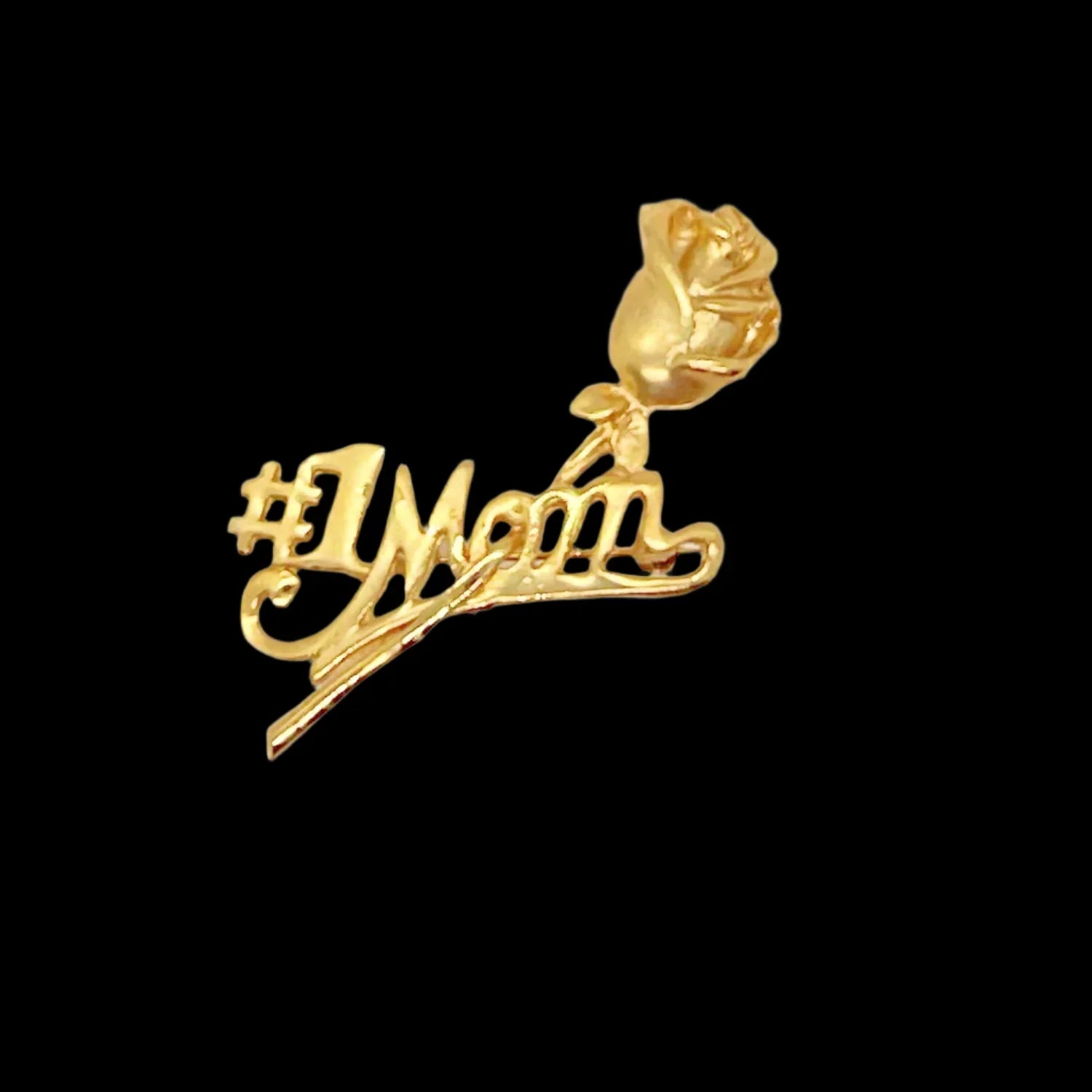 Lavish Mother #1 Gold Tone Brooch with Rose