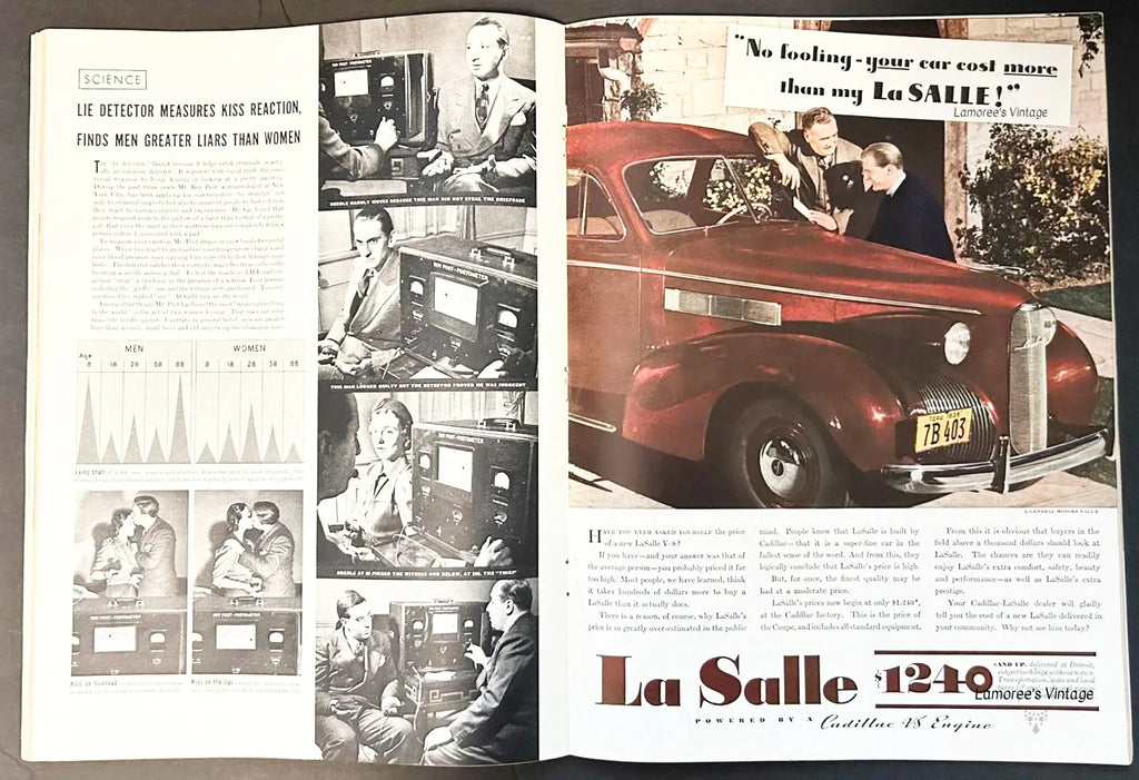 Cover story: The Law in Texas, with WL Barler, former Texas Ranger, Freemasons in Allentown PA present a Passion Play; Franco takes the reins in Spain while France also becomes a dictatorship, Egyptian Princess marries Crown Prince of Iran; Senator Taft in Ohio, "Hound of the Baskervilles" movie; kite flying. This issue has 87 pages, with small mailing label on back cover. Pinholes in bottom right corners.
