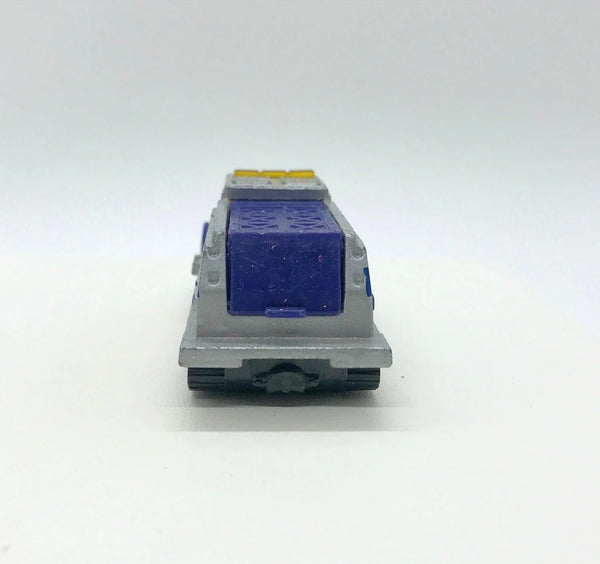 Silver with blue and white decals, black wheels, blue blade and cover, yellow windows. Made in China, 1:75 scale. 2430BJ. Played with condition.