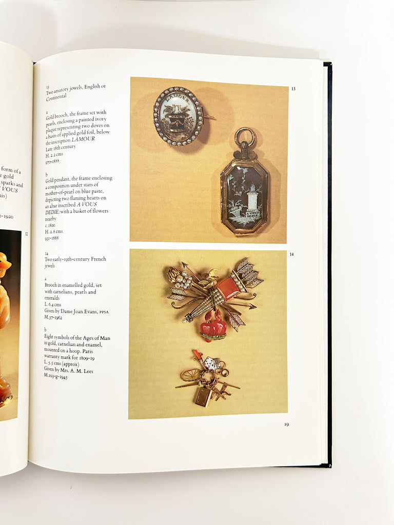 Discover the emotional narratives woven into centuries of European adornment with this captivating first edition- "Sentimental Jewellery"- from the Victoria and Albert Museum's prestigious Decorative Arts series. Shirley Bury's scholarly yet accessible exploration traces how jewelry became a language of the heart—from tokens of devotion to poignant mourning pieces spanning the 17th through 19th centuries. Published in 1985 by HMSO and Stemmer House, this beautifully illustrated 48-page hardcover (10" x 7.5") offers collectors and jewelry enthusiasts an authoritative window into how our ancestors transformed precious metals and stones into deeply personal keepsakes. A thoughtful addition to any decorative arts library.