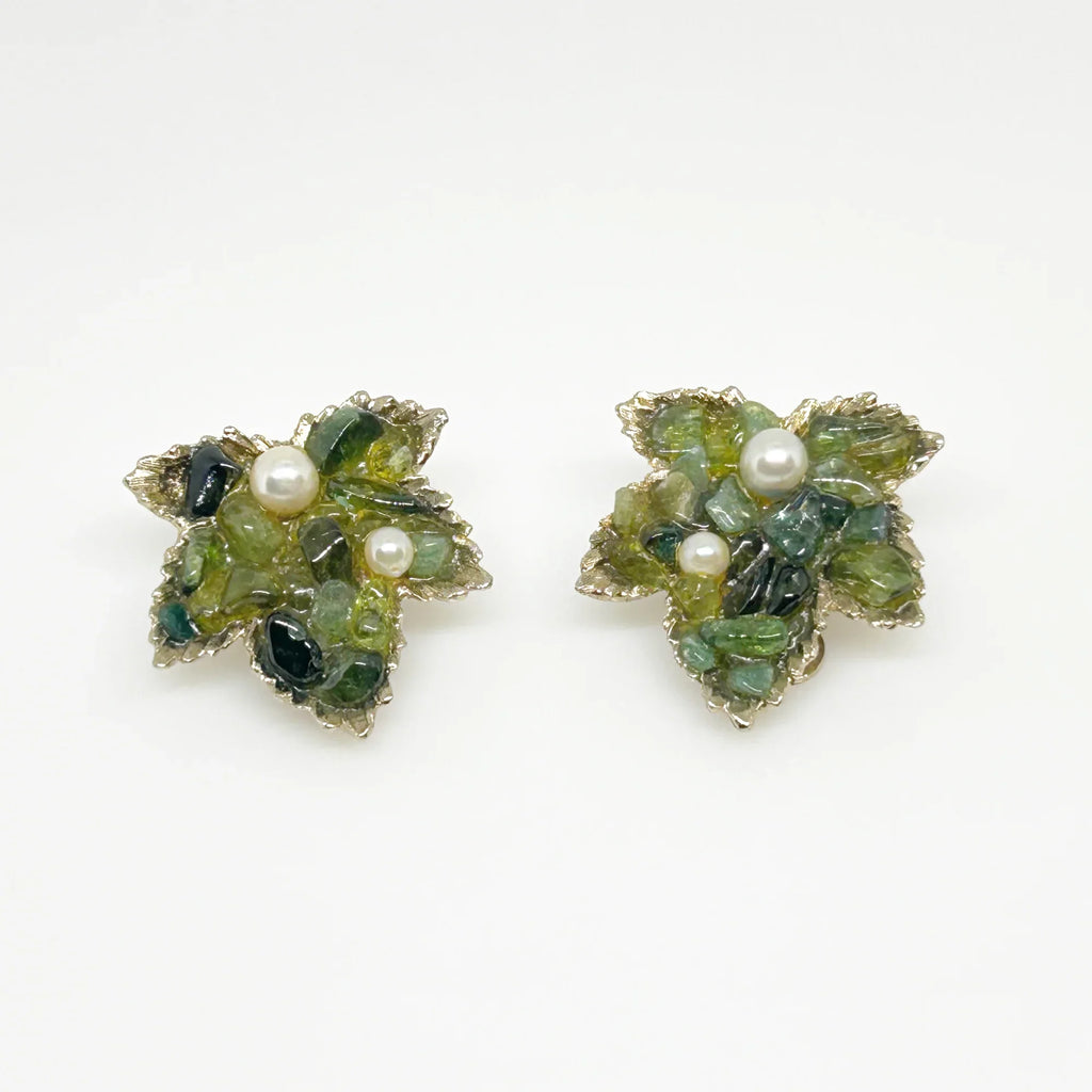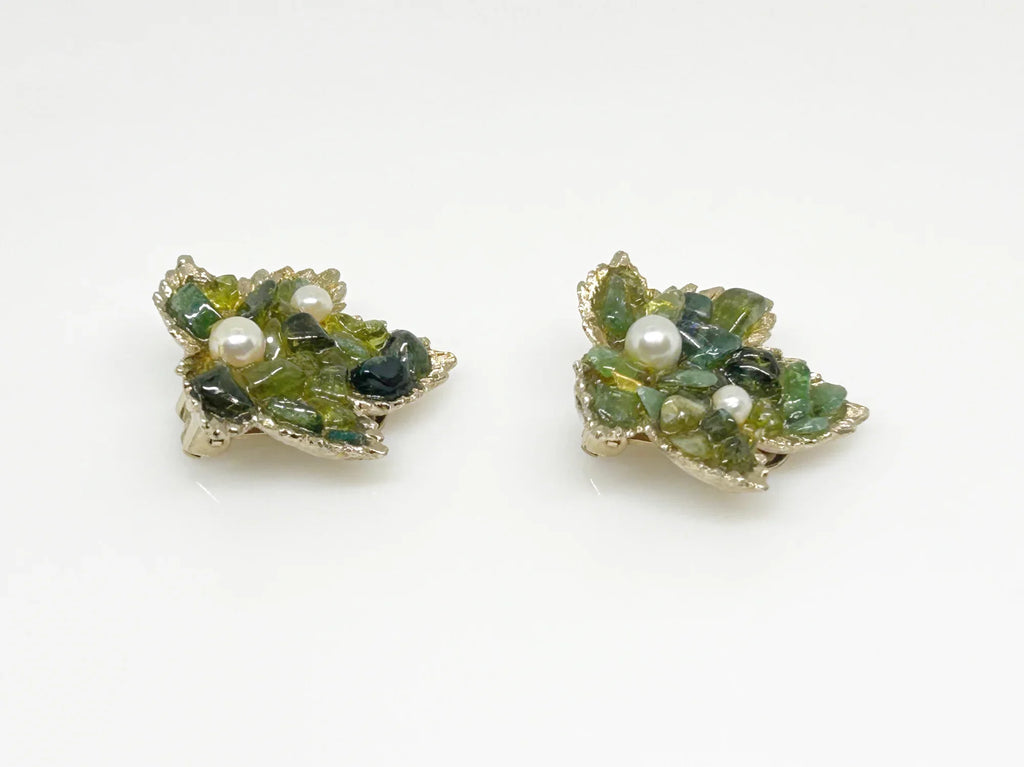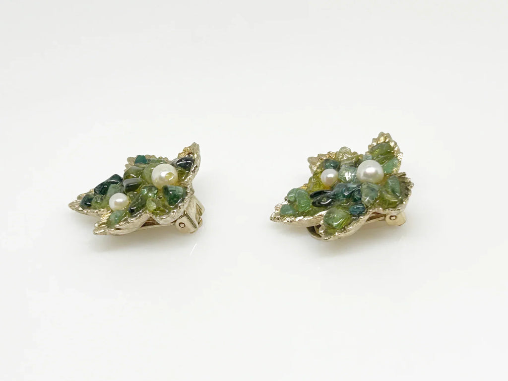 Swoboda Jadeite Leaf and Faux Pearl Clip Earrings