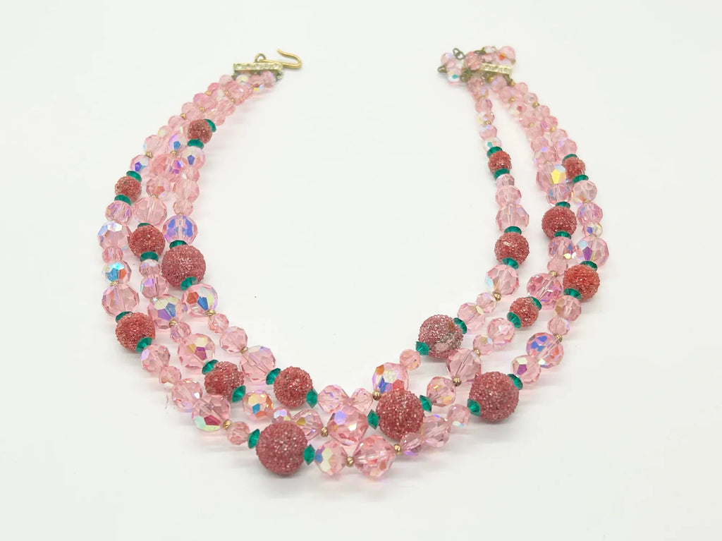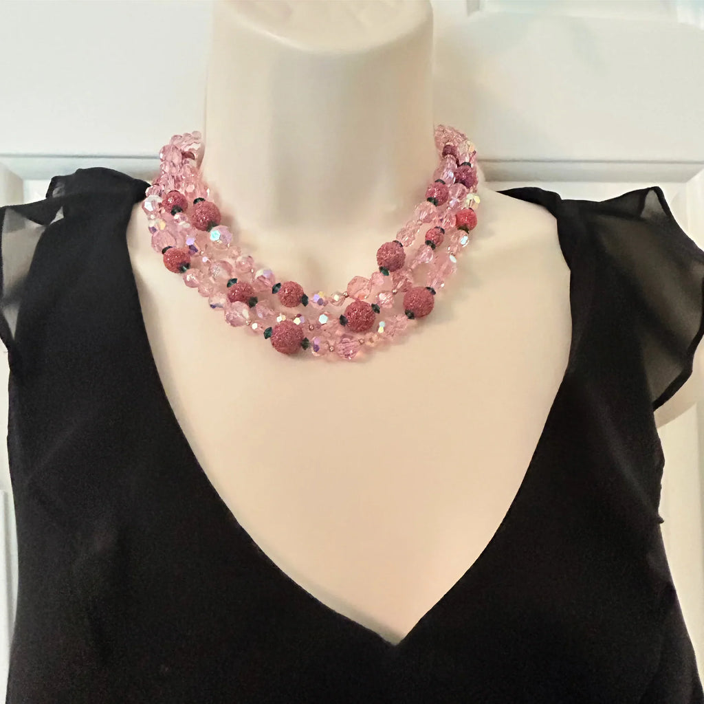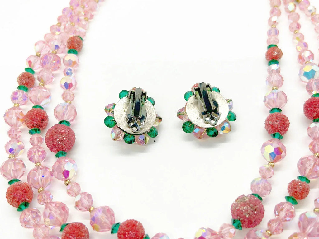 Vintage Glamour in Pink, Red and Green Glittering Necklace and Earrings Set