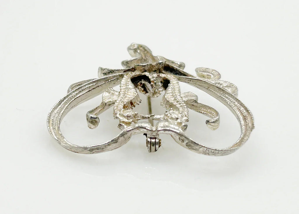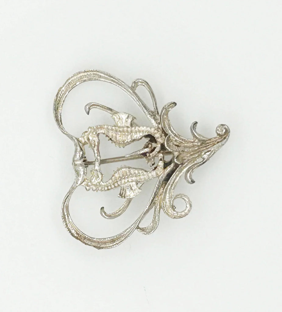 Vintage Sea Horses in a Heart Brooch
